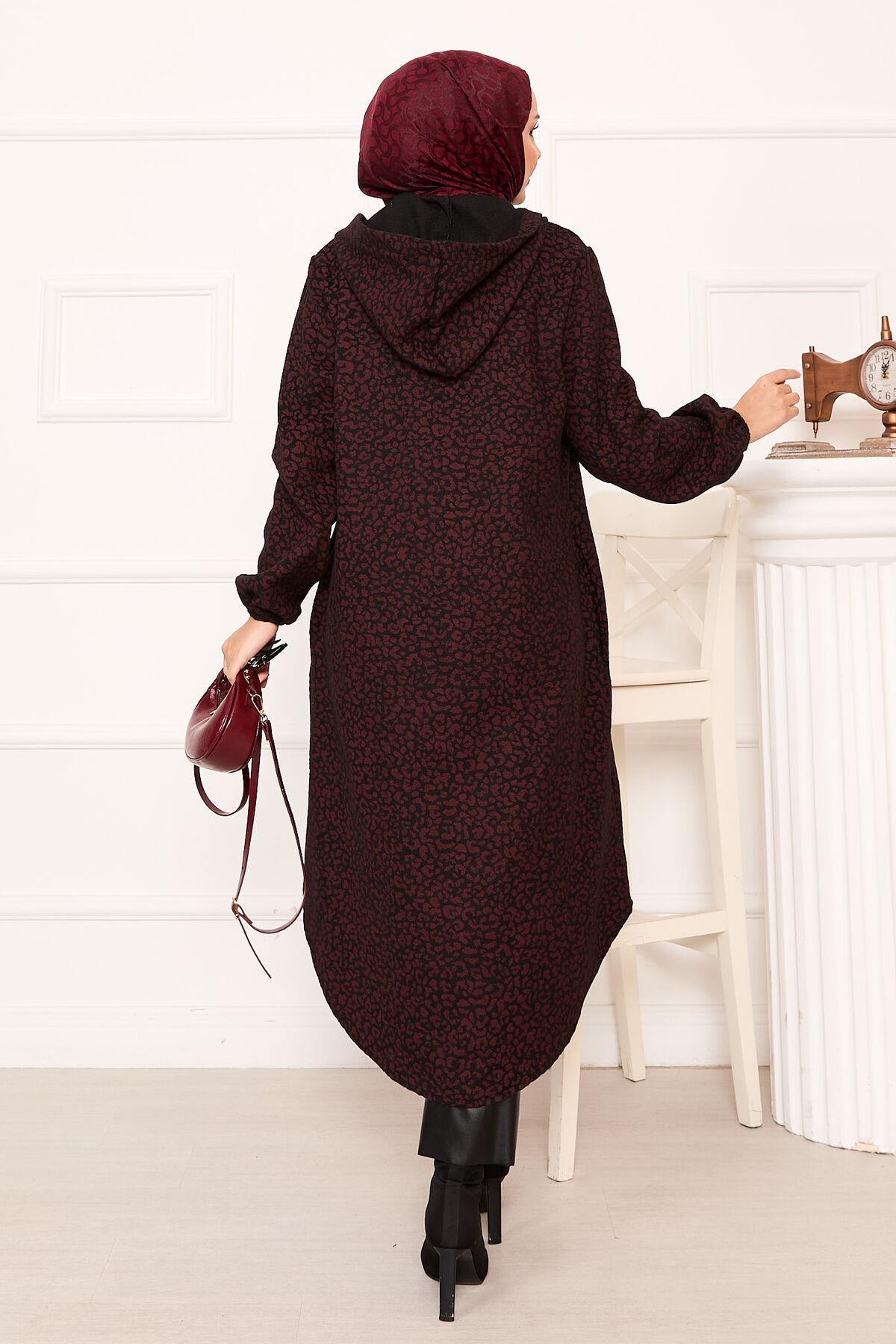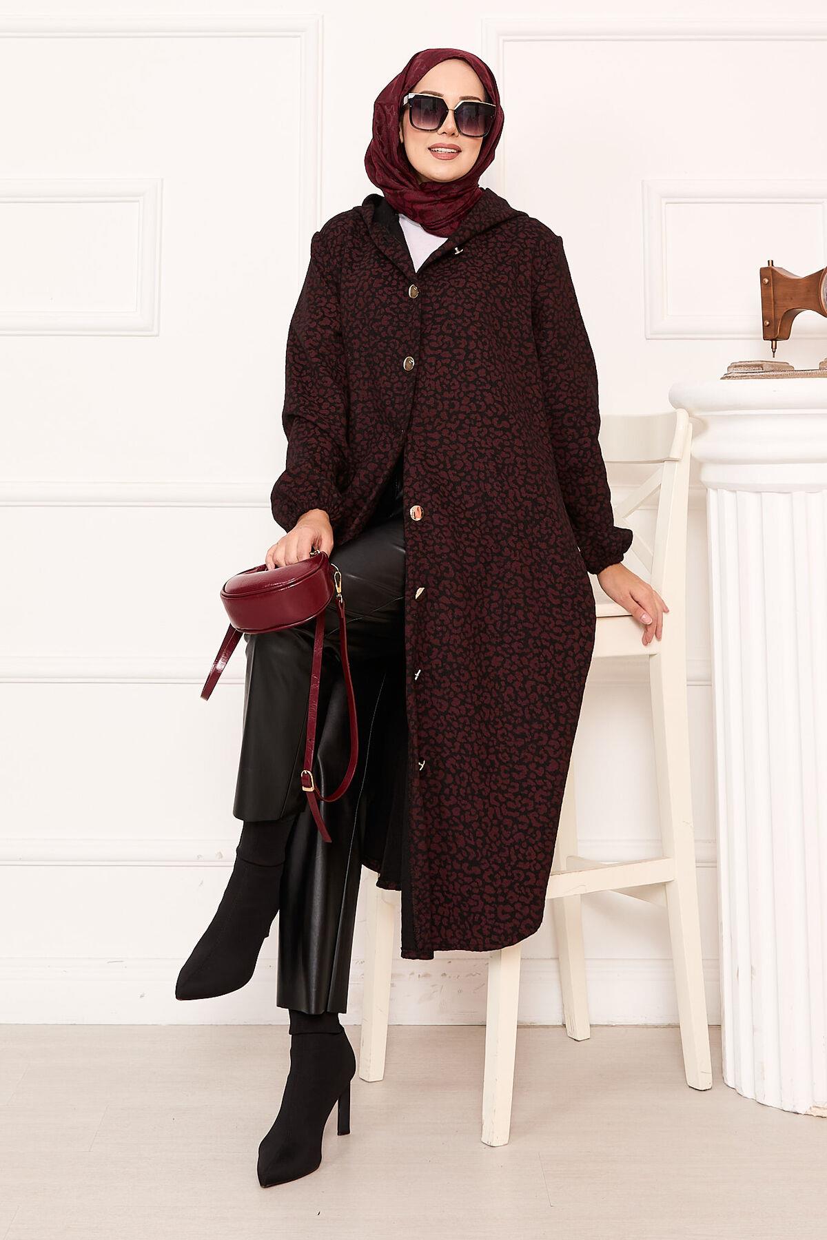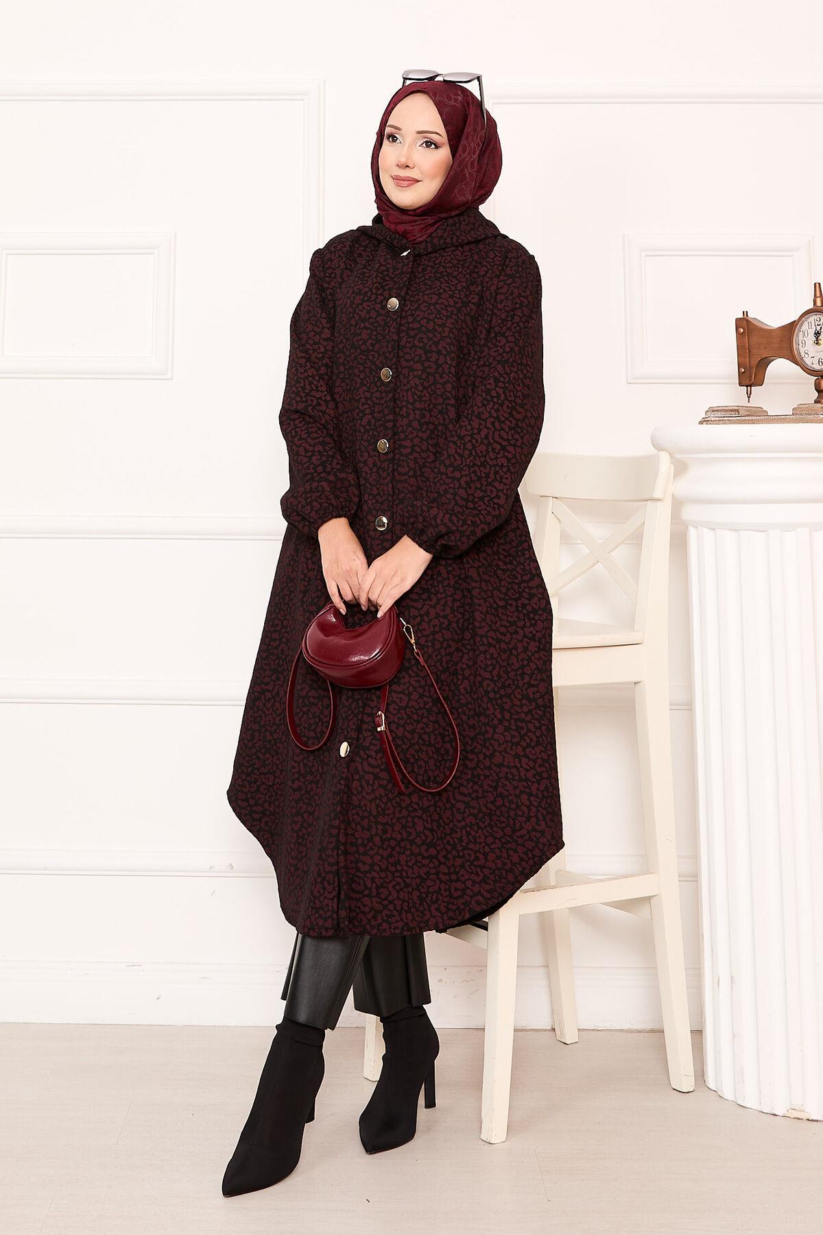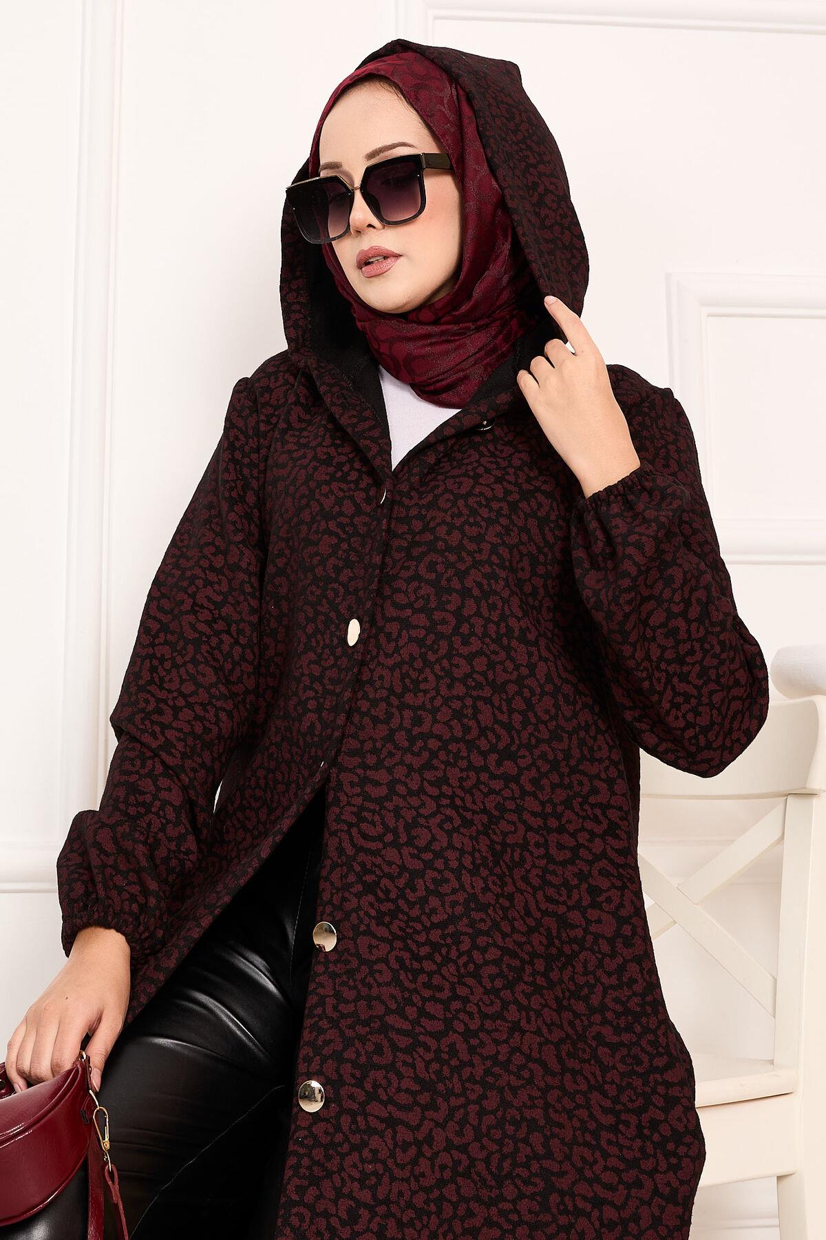 Leopard Patterned Buttoned Cashmere Cape Burgundy (125M02318065R0840)