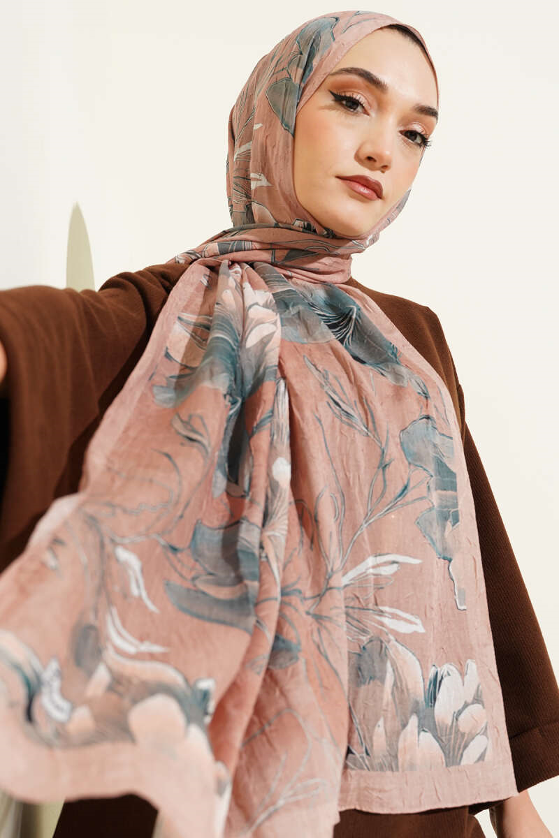 Lilyum Pattern Bamboo Crush Shawl Latte (0778-4872-698774)