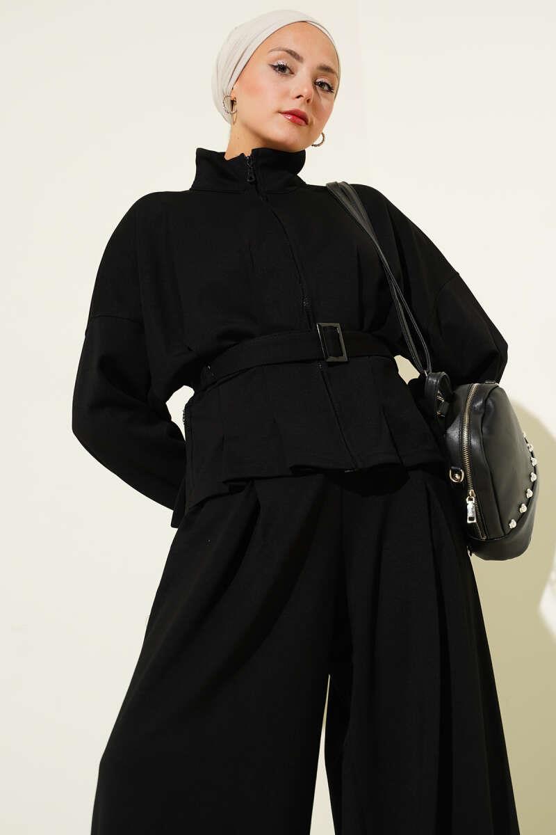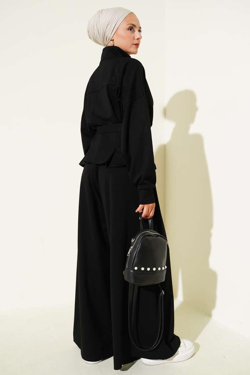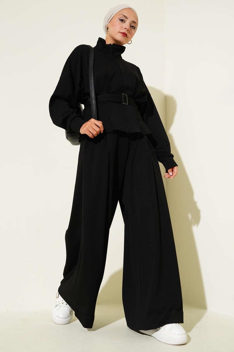 Loysha Waist Darted Belted 2 Piece Set Black (0853-5241-673164)