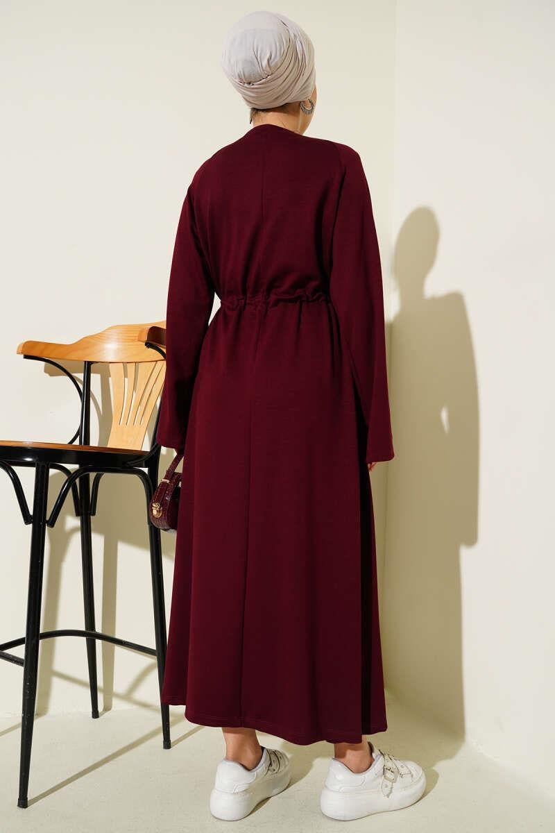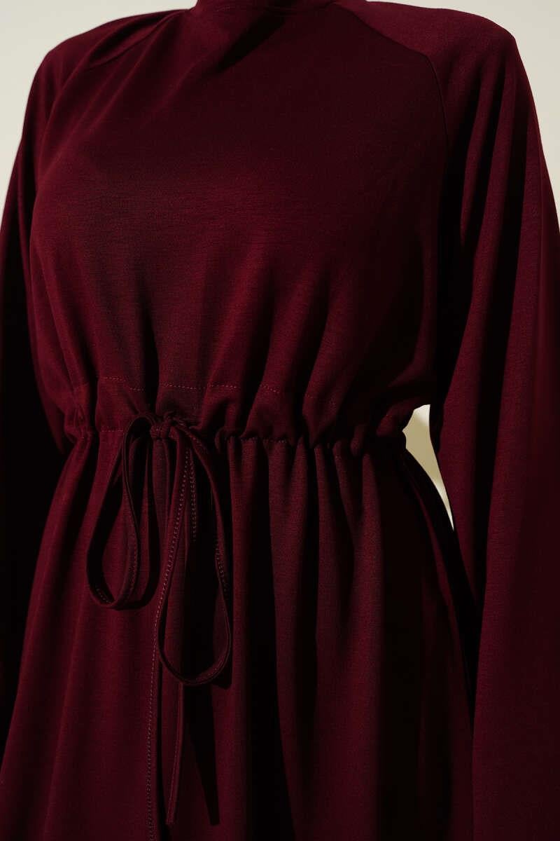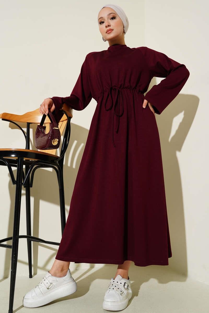 Loyşa Waist Tunnel Detail Dress Burgundy (0026-3188-672096)