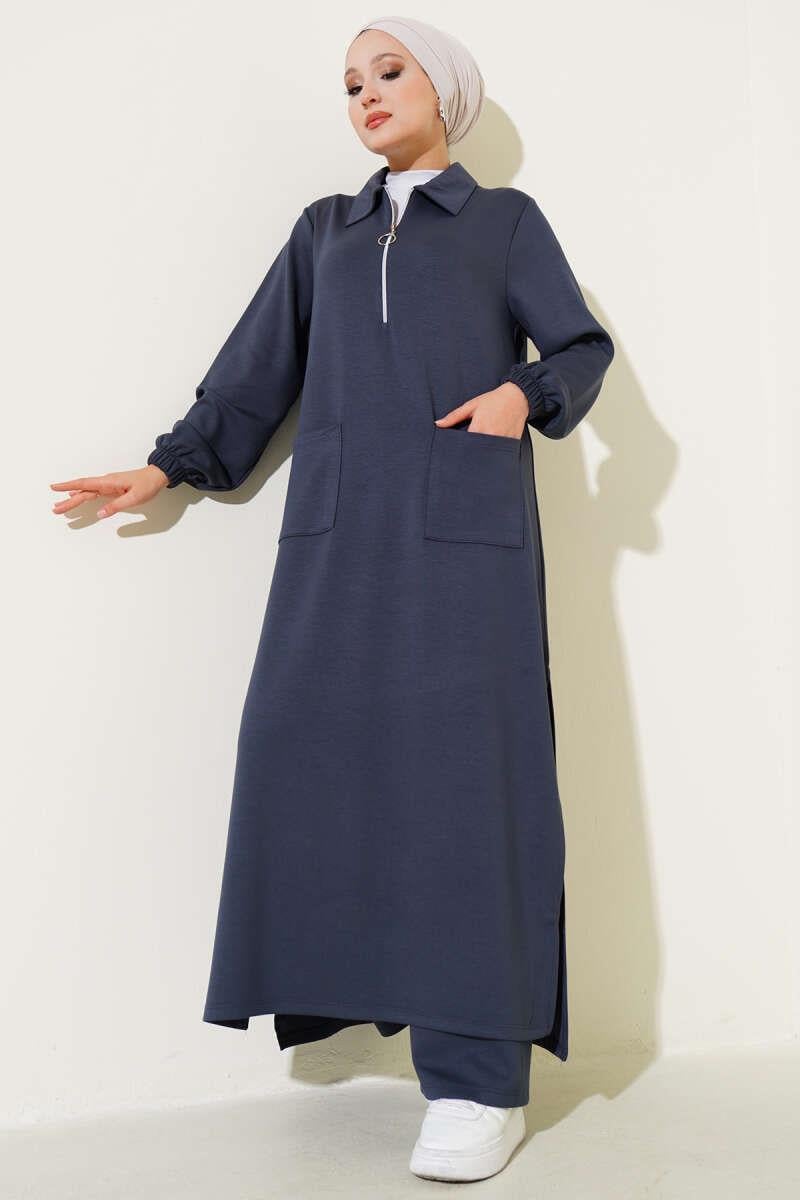 Loyşa Pocketed Long Tunic 2 Piece Set Smoke (0829-5313-670550)