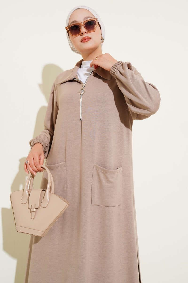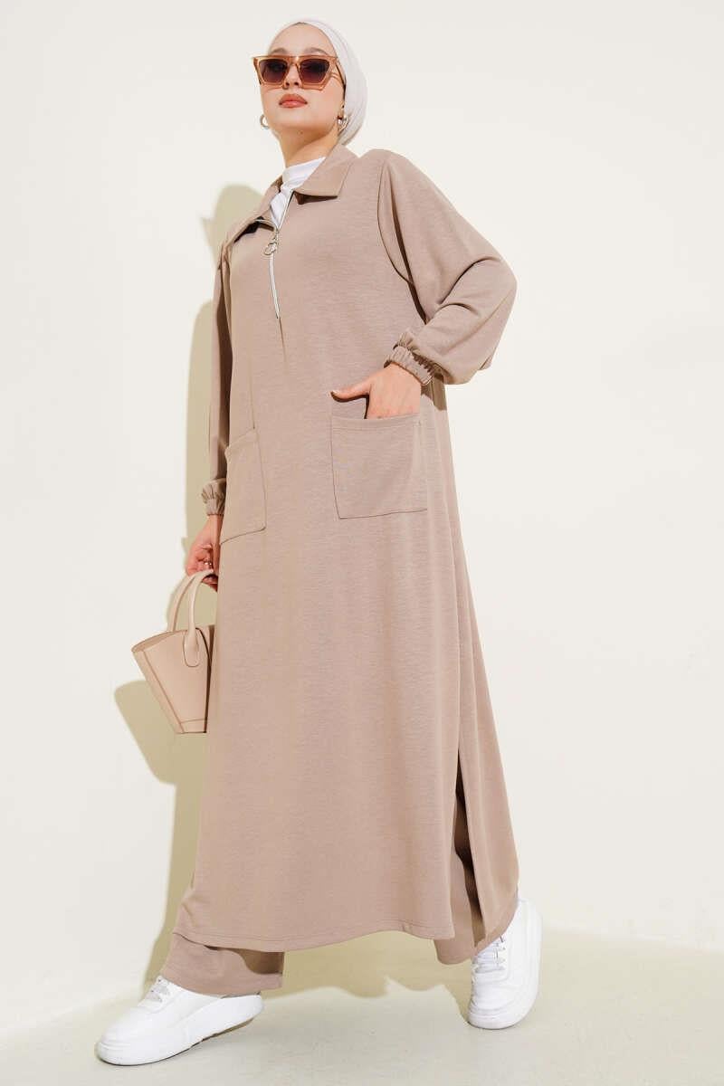 Loyşa Pocketed Long Tunic 2 Piece Set Latte (0829-5313-670546)