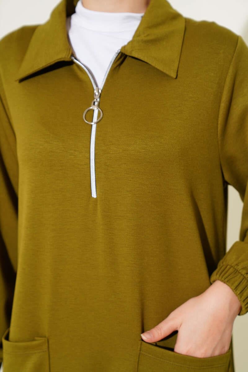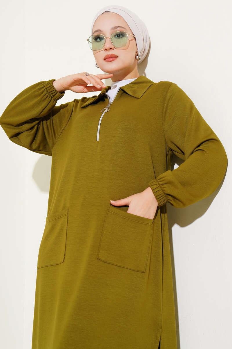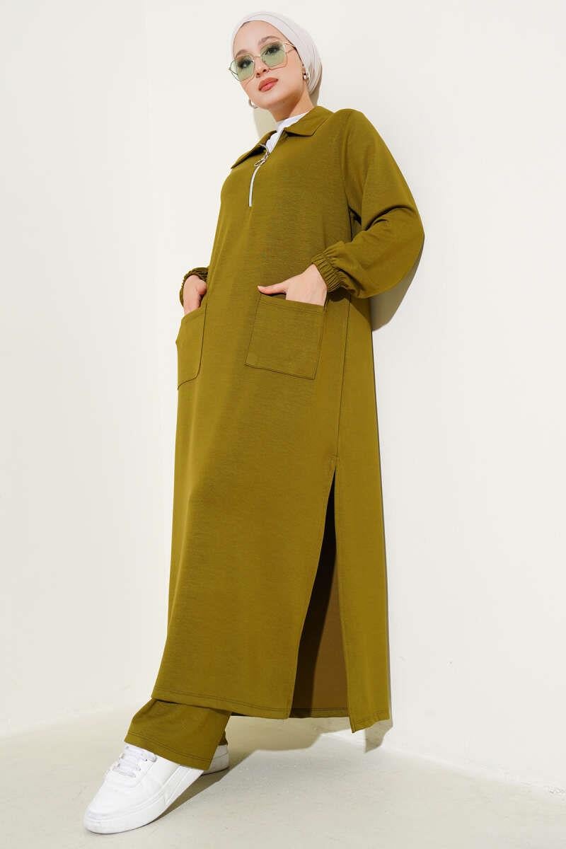 Loyşa Pocketed Long Tunic 2 Piece Set Oil Green (0829-5313-670542)