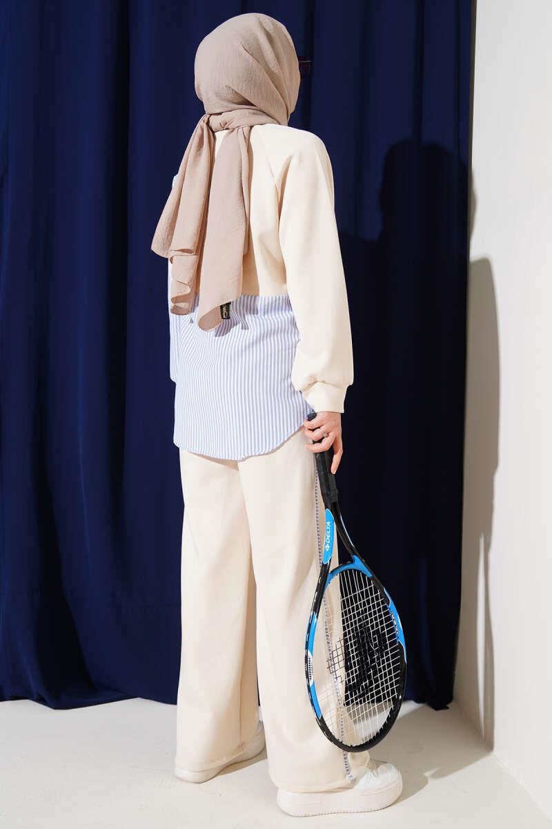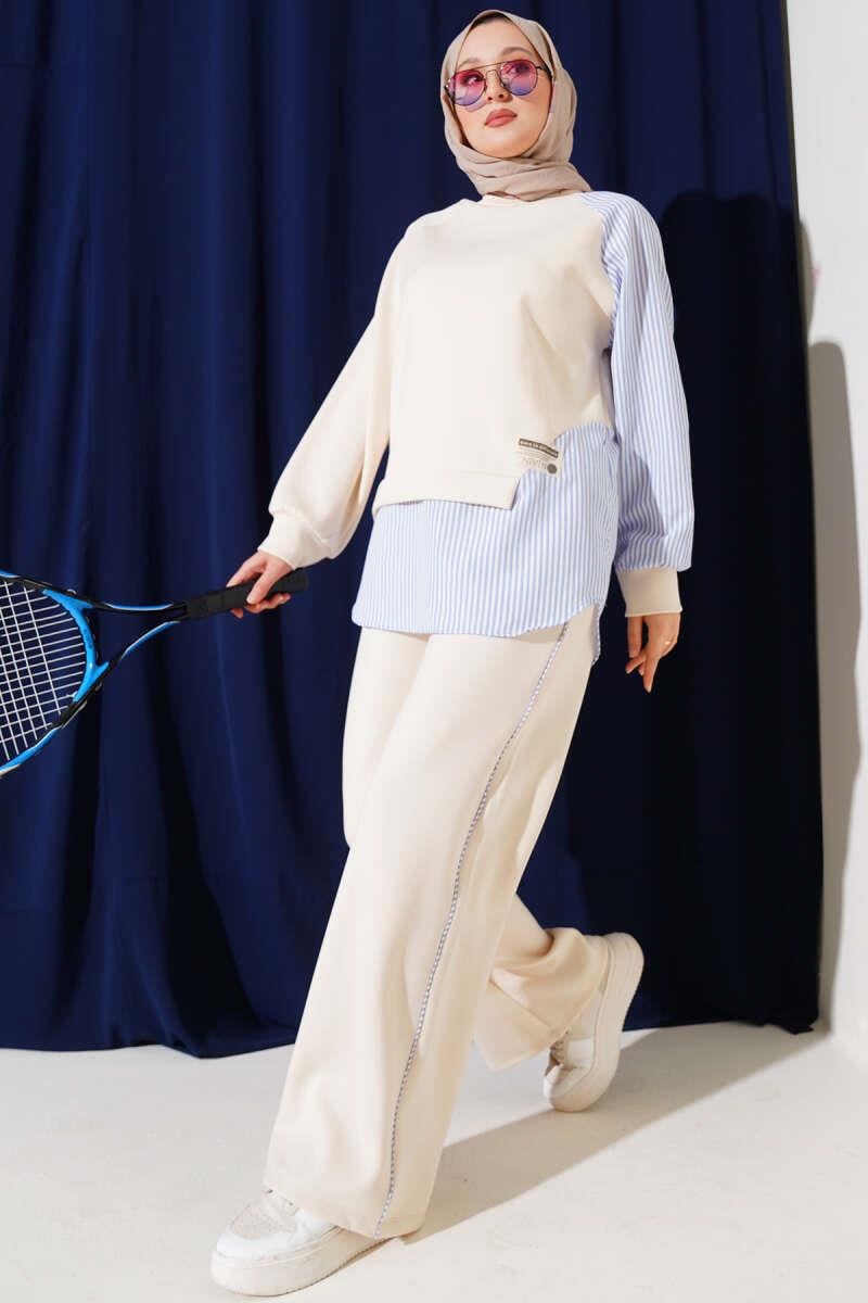 Loysha Striped Garnish Tunic 2 Piece Set Stone (0643-18698-636735)