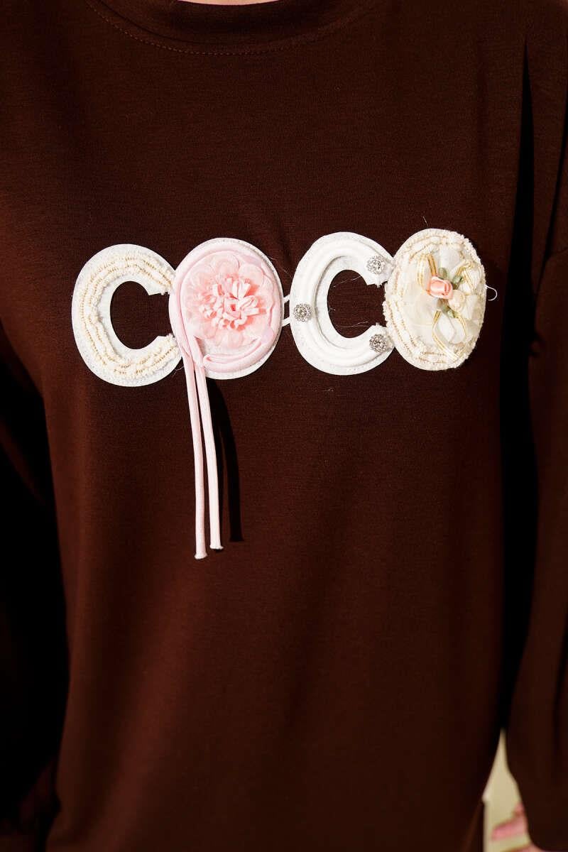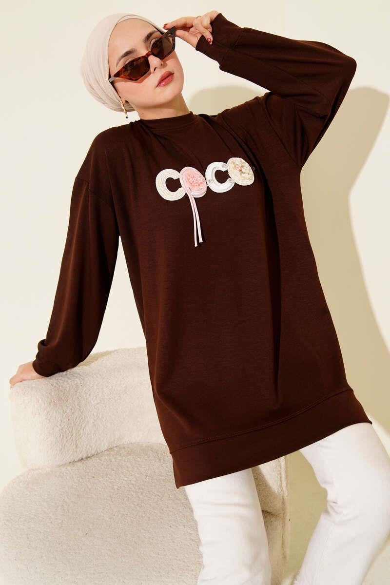 Loyşa Coco Text Decorated Tunic Brown