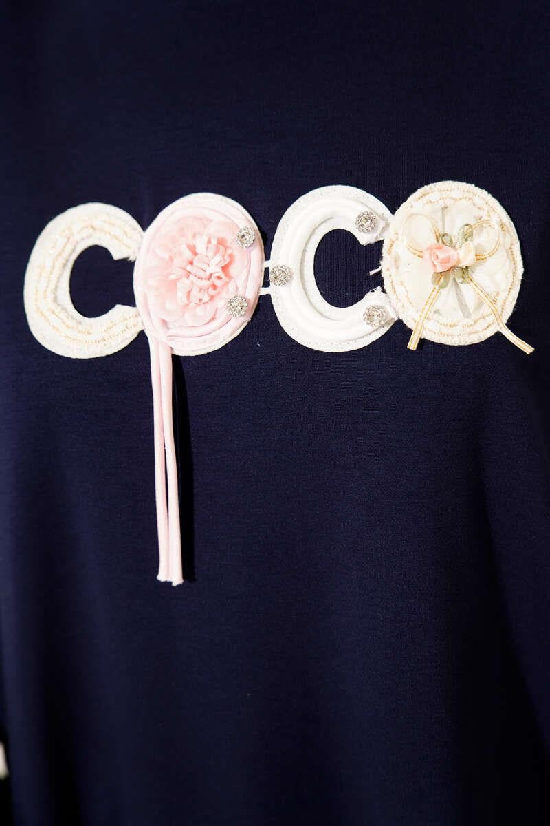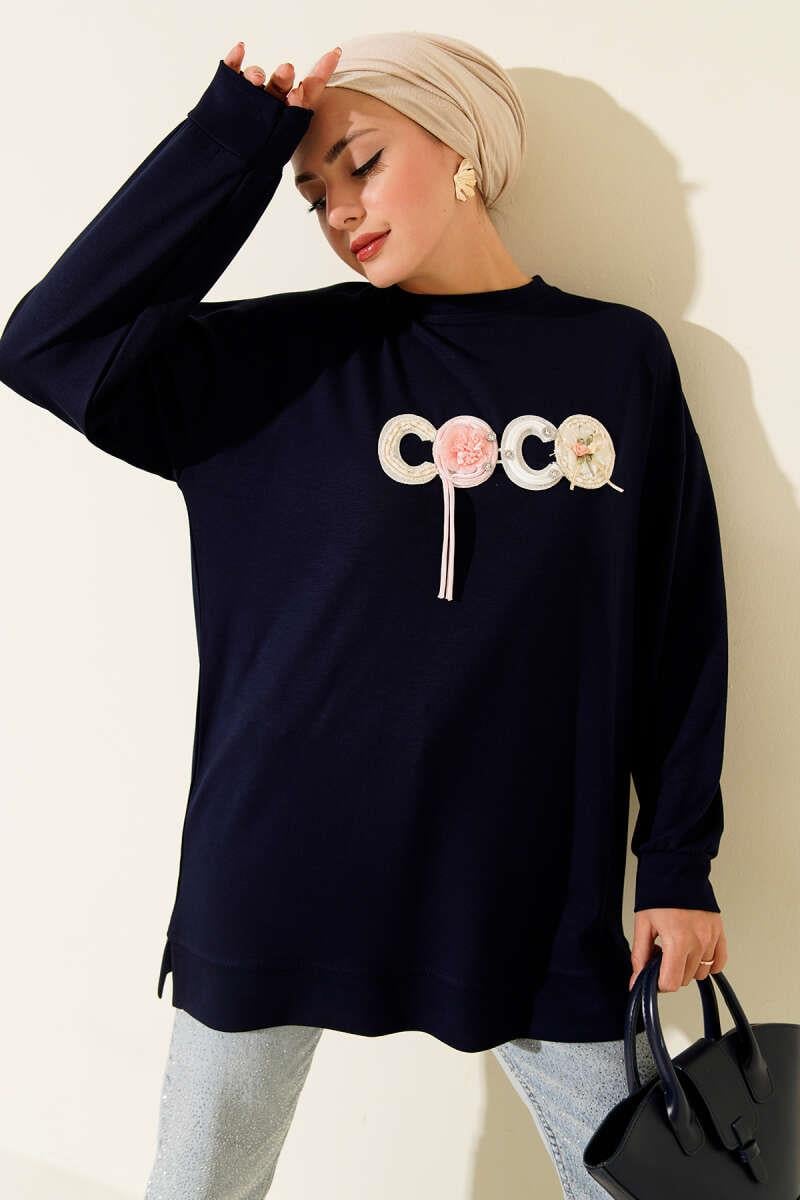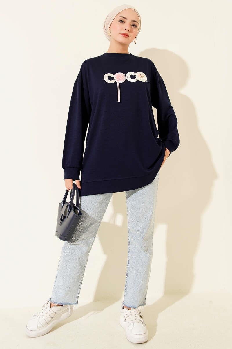 Loyşa Coco Text Decorated Tunic Navy Blue