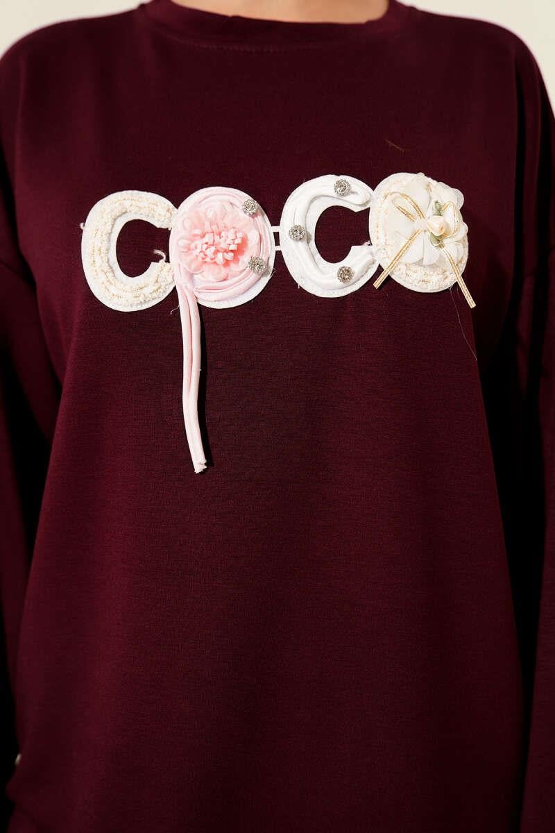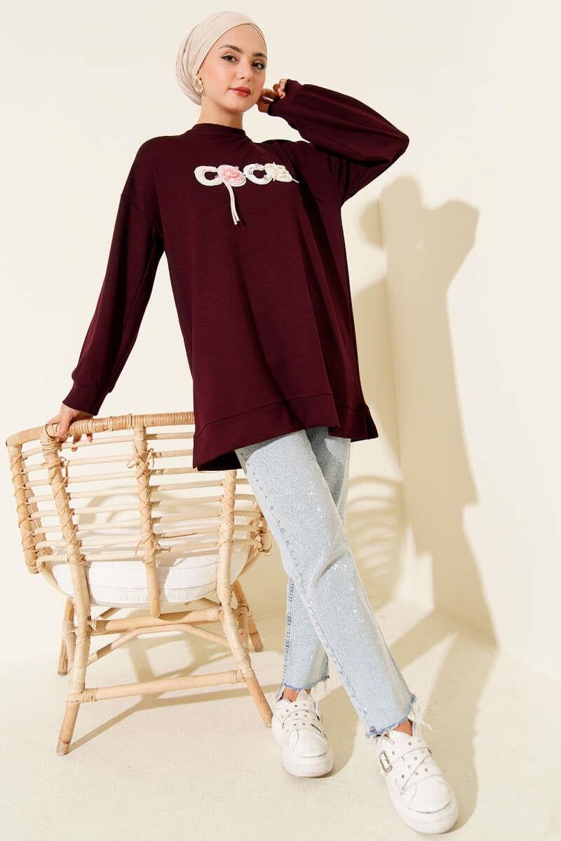 Loyşa Coco Text Decorated Tunic Plum