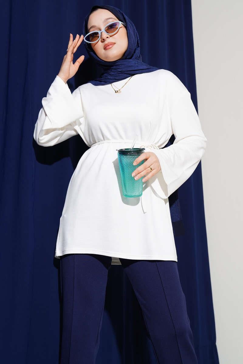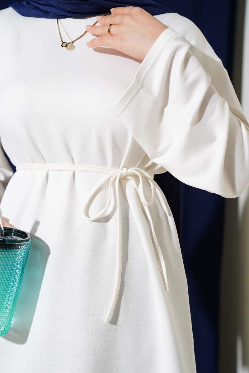 Loyşa Wide Sleeved Rope Belted Tunic Ecru (0582-13071-664014)