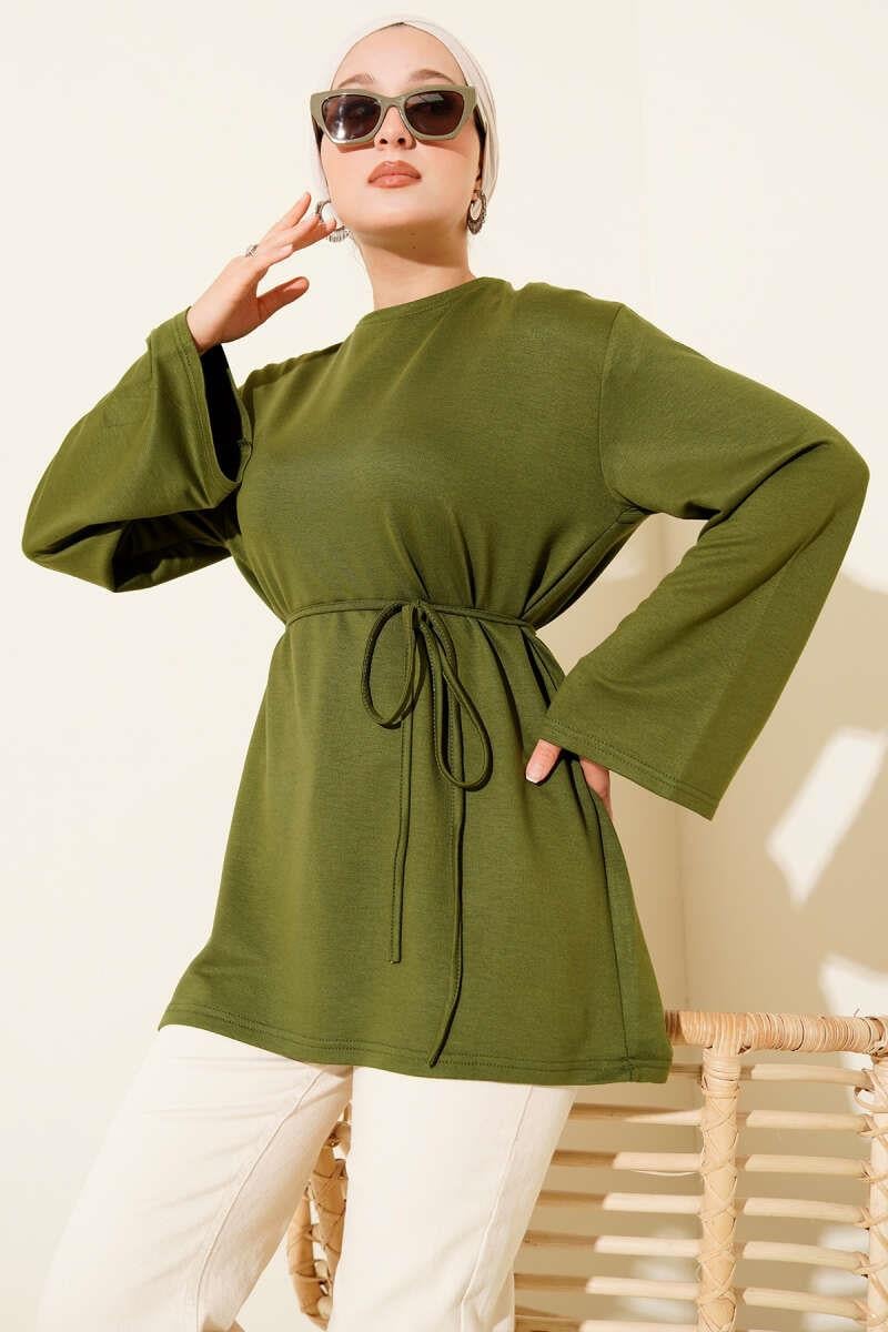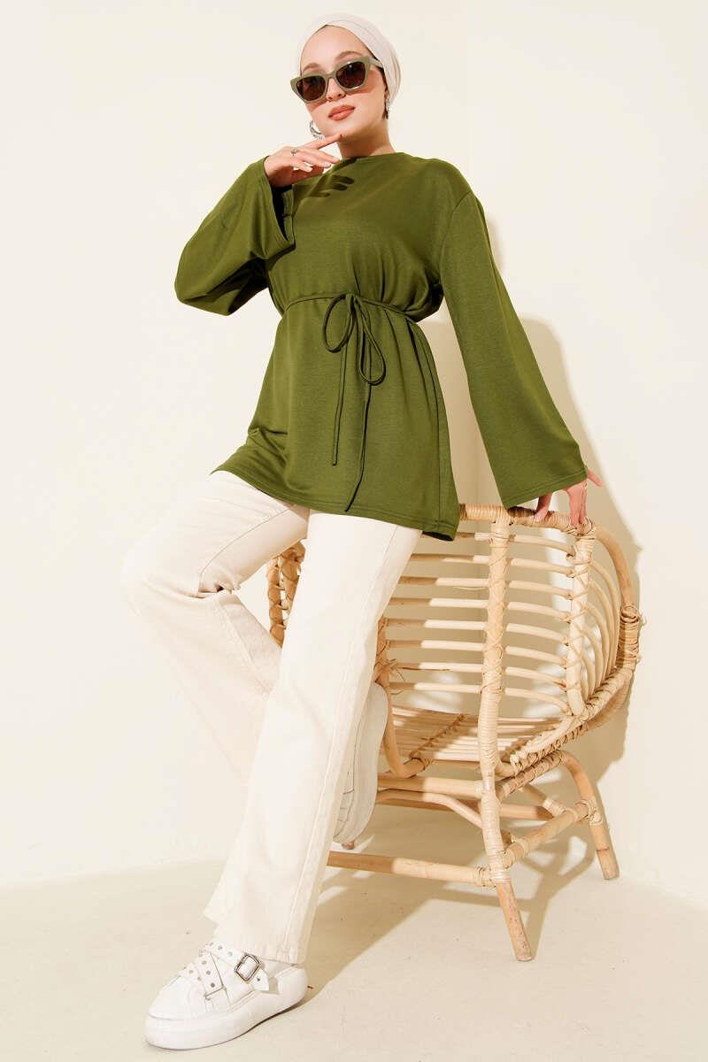 Loyşa Wide Sleeved Rope Belted Tunic Khaki (0582-13071-671794)