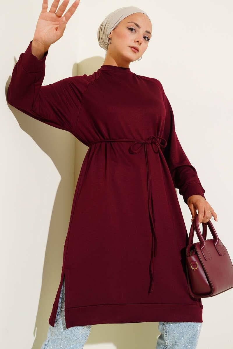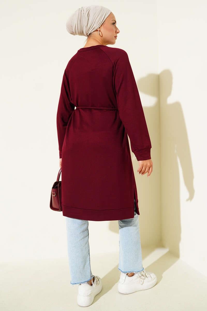 Loyşa Rope Belted Long Tunic Burgundy (0582-13085-671485)