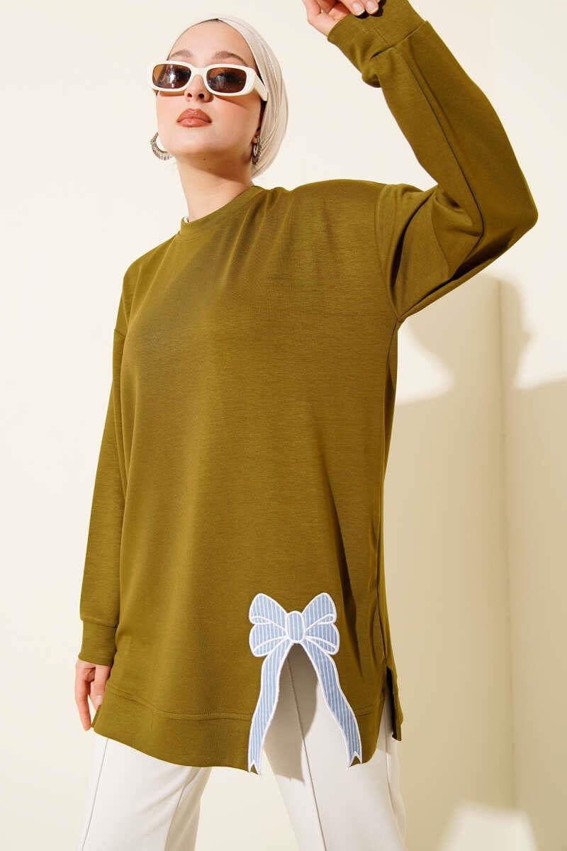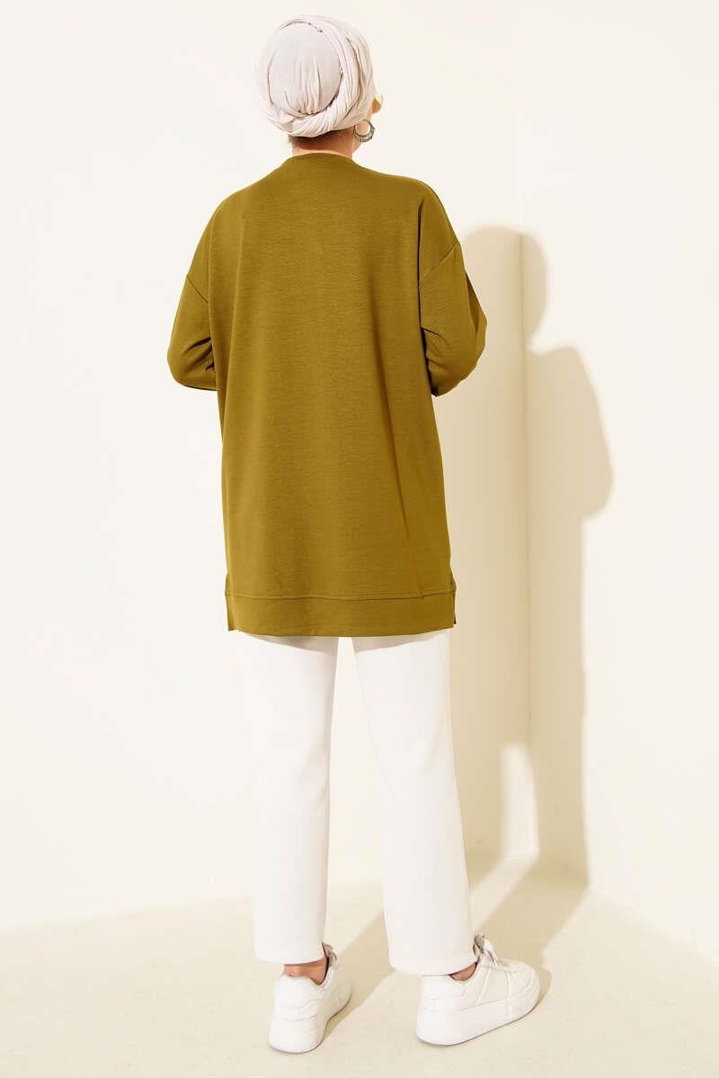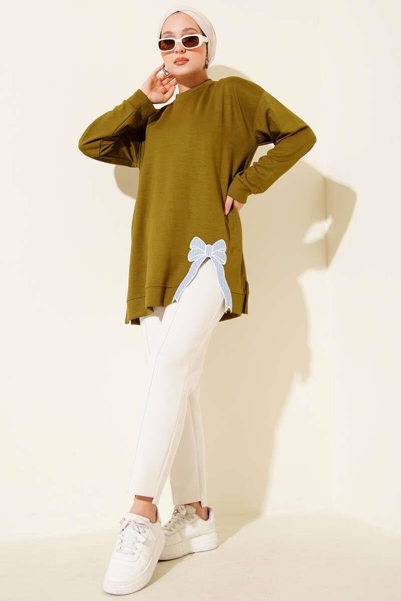 Loyşa Ribbon Embroidery Detailed Tunic Olive Green (0674-821-668281)