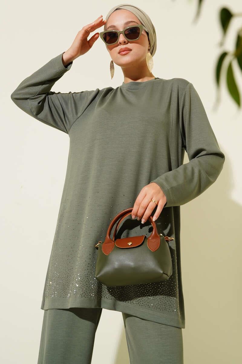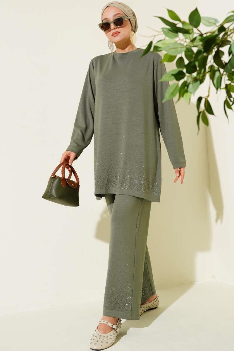 Loyşa Mini Stone Embellished 2 Piece Set, Almond Green (0829-5374-665761)