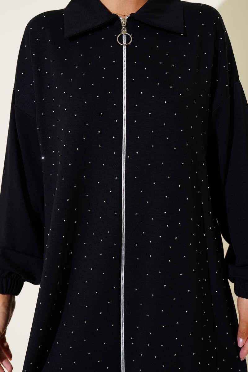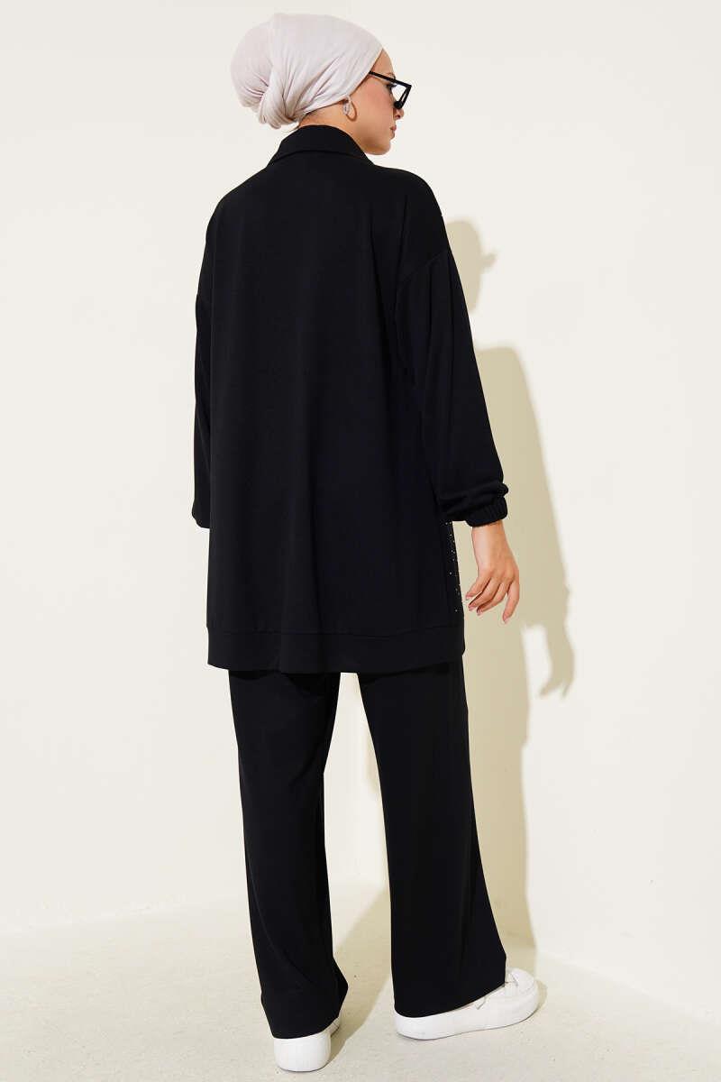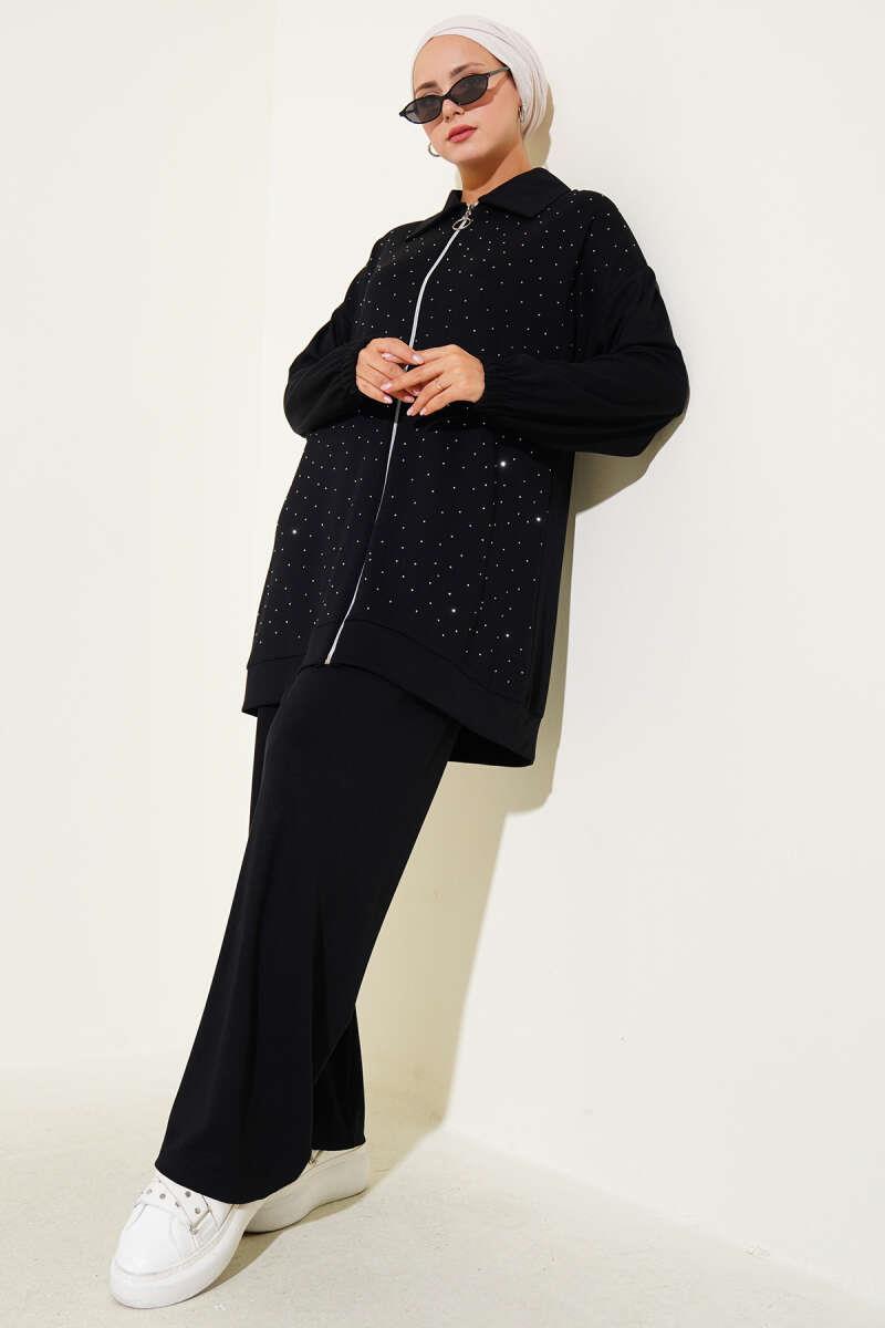 Loysha Stone Embellished Zippered 2 Piece Set Black (0829-5309-666151)