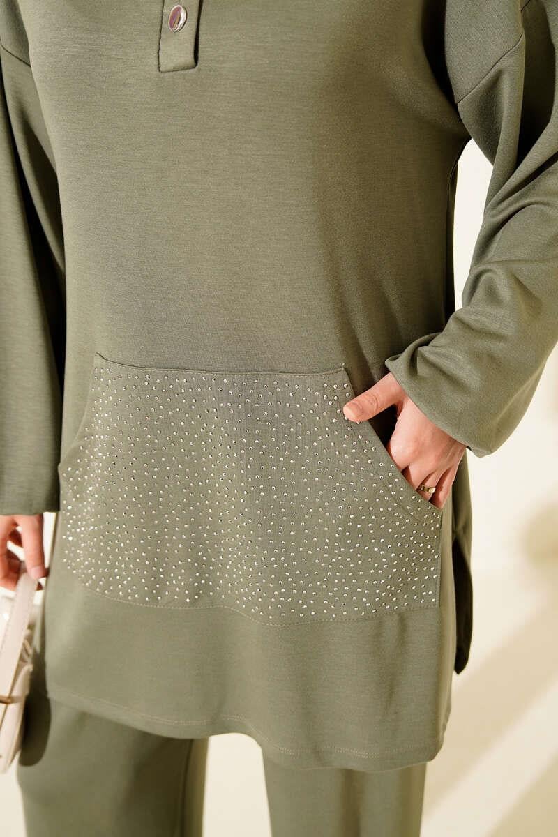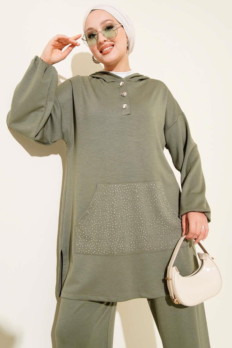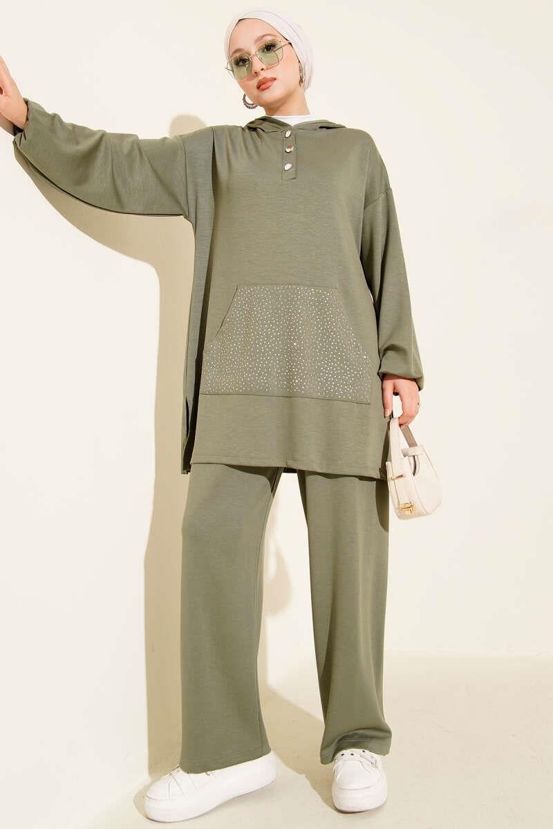 Loyşa Stoned Kangaroo Pocket 2 Piece Set, Almond Green (0829-5318-665682)