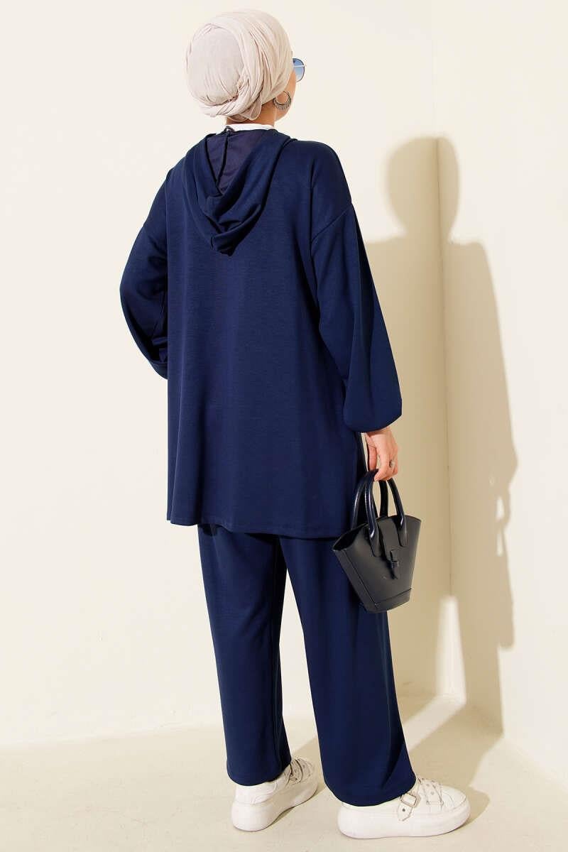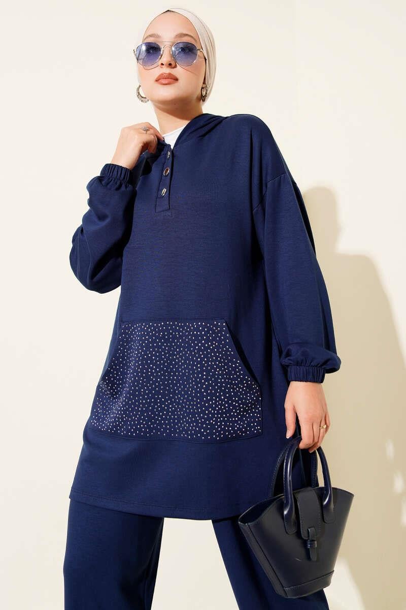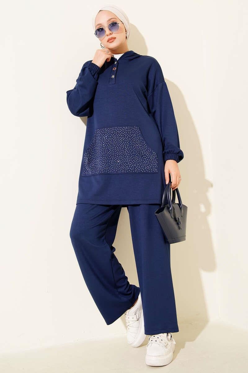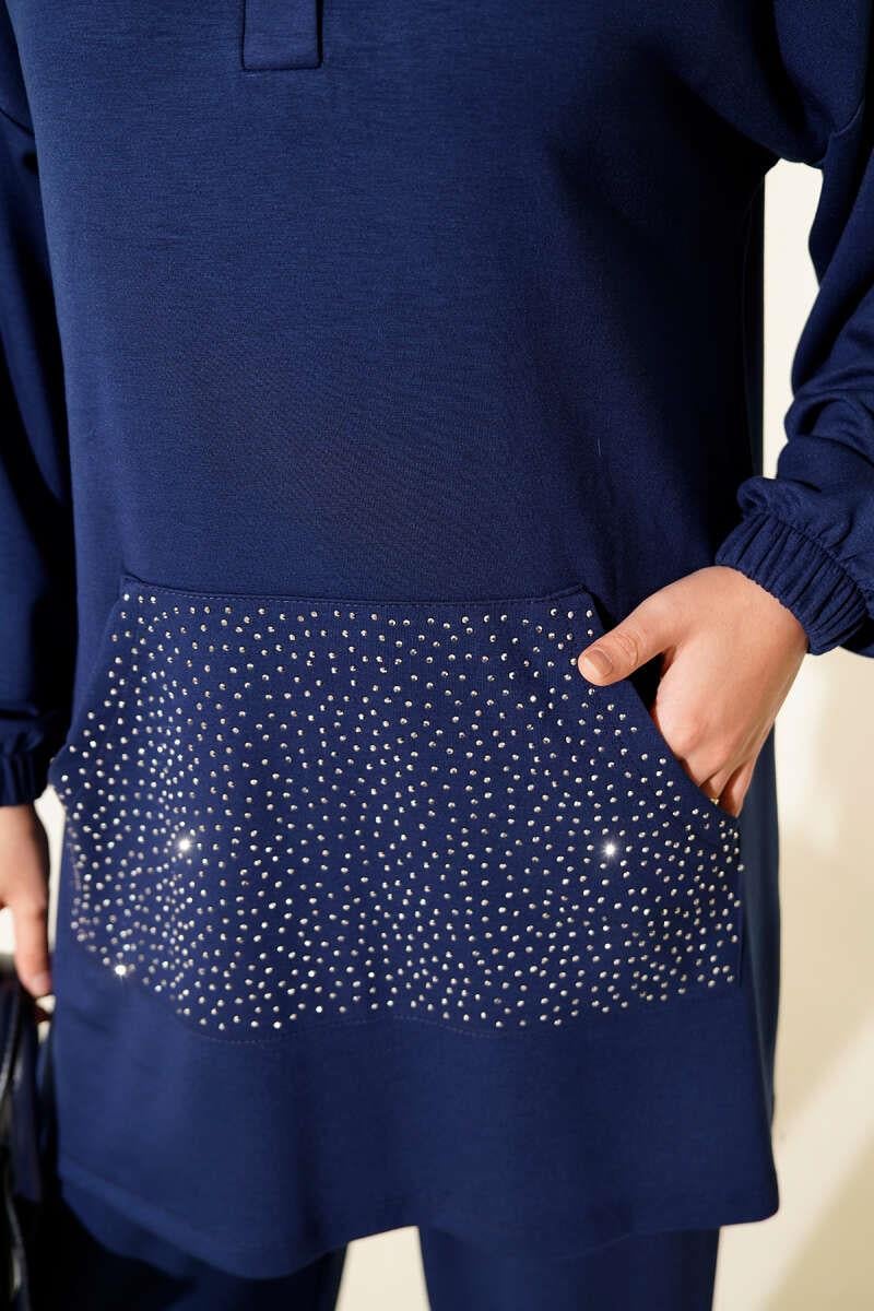 Loysha Stoned Kangaroo Pocket 2 Piece Set Navy Blue (0829-5318-665690)