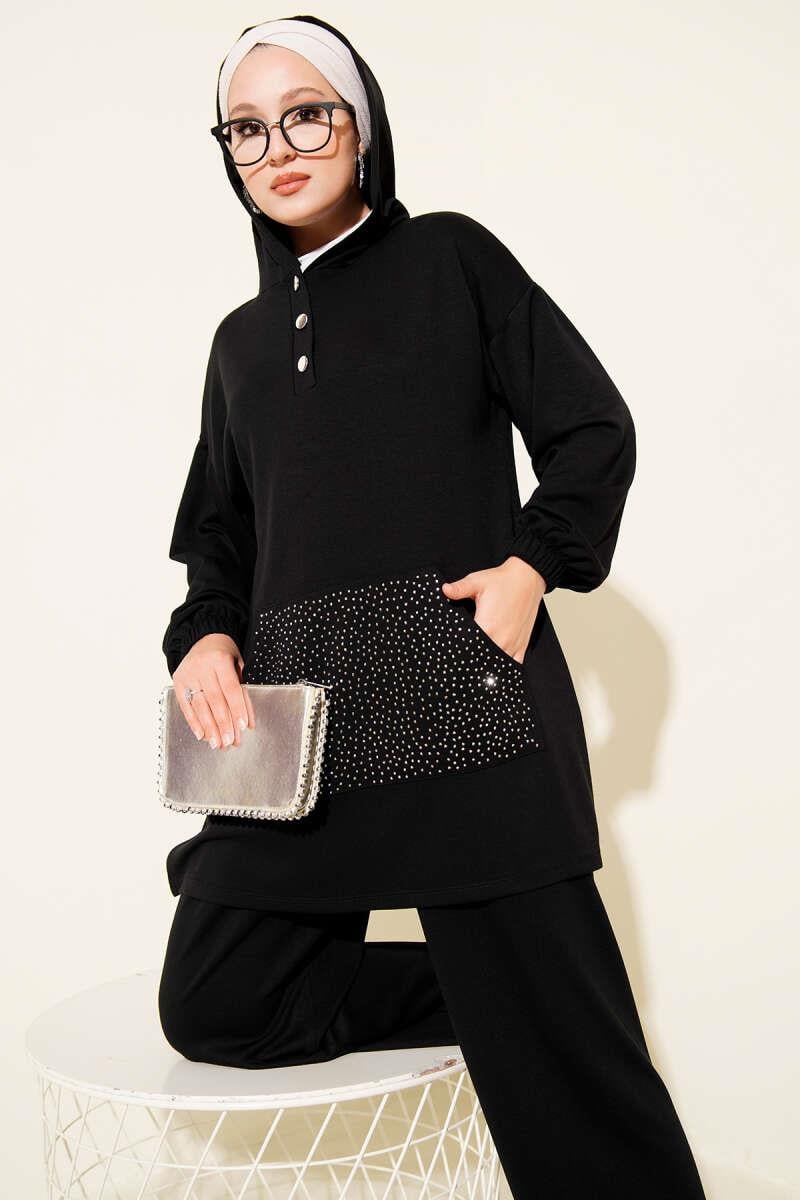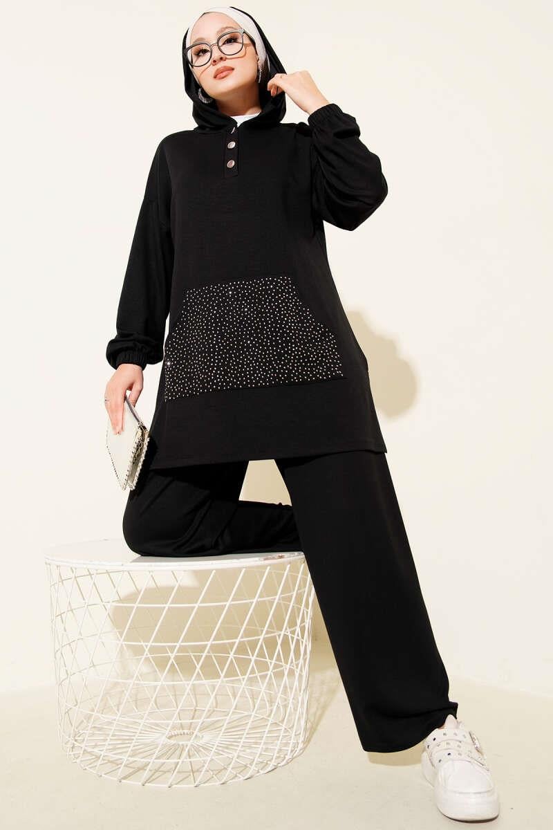 Loysha Stoned Kangaroo Pocket 2 Piece Set Black (0829-5318-665694)