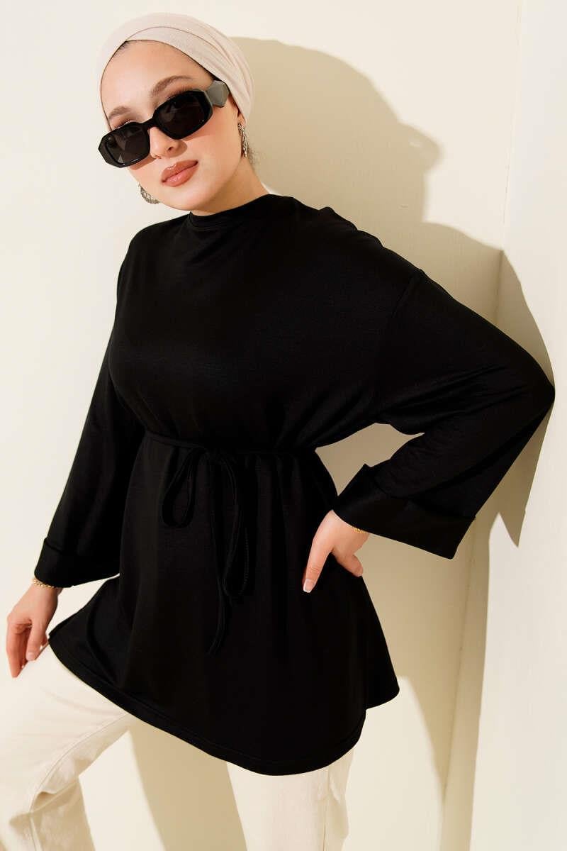 Loyşa Side Slit Belted Tunic Black (0582-13073-671553)