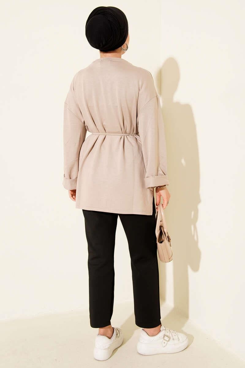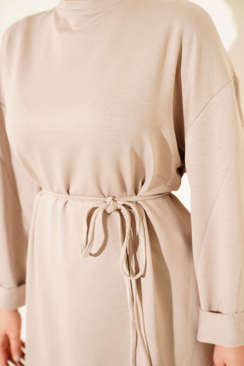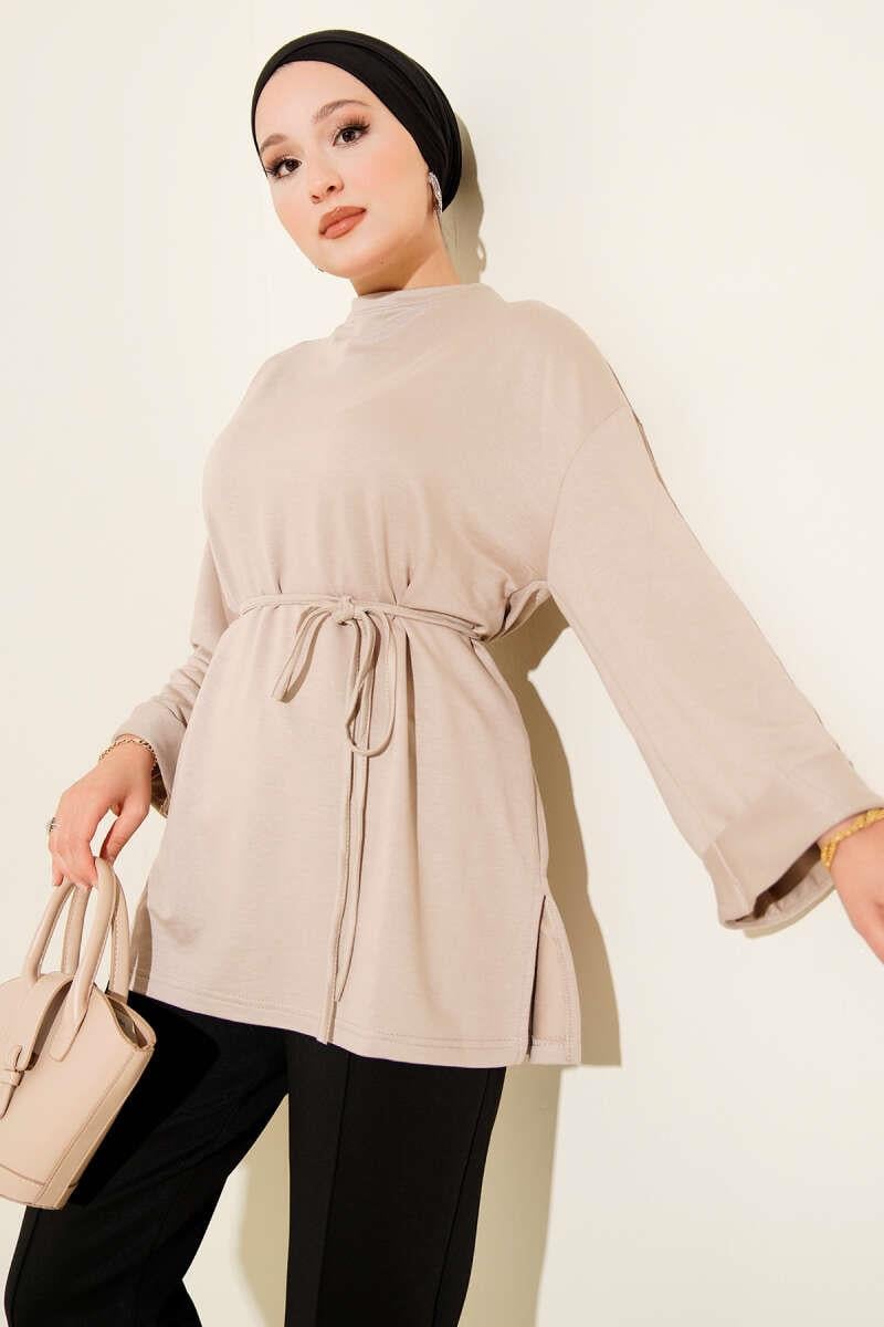 Loyşa Side Slit Belted Tunic Stone (0582-13073-672454)