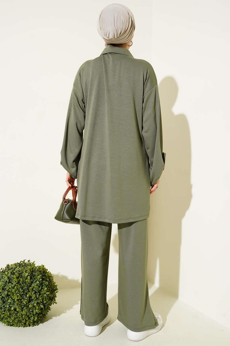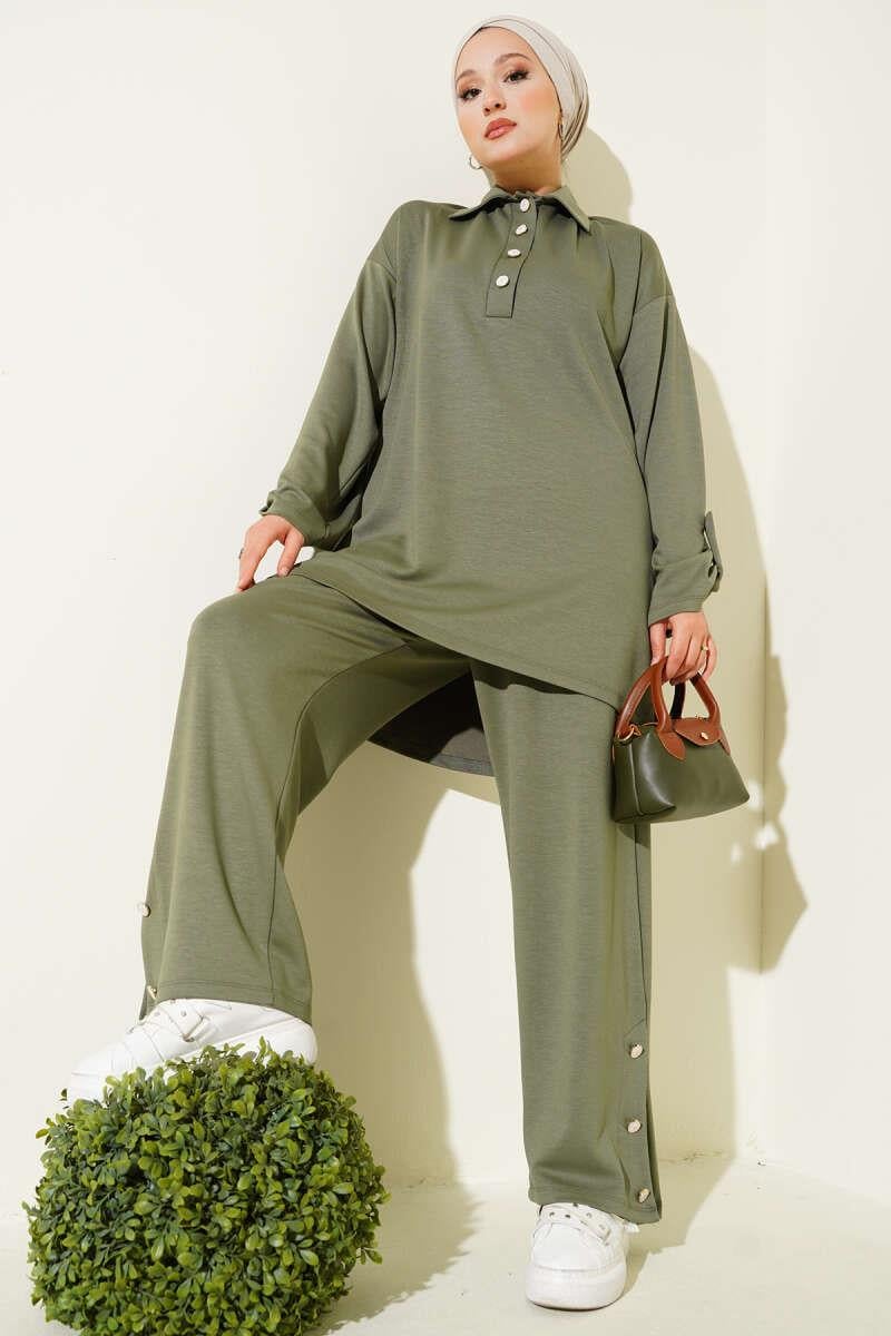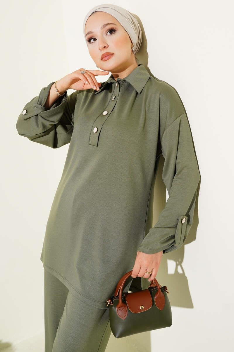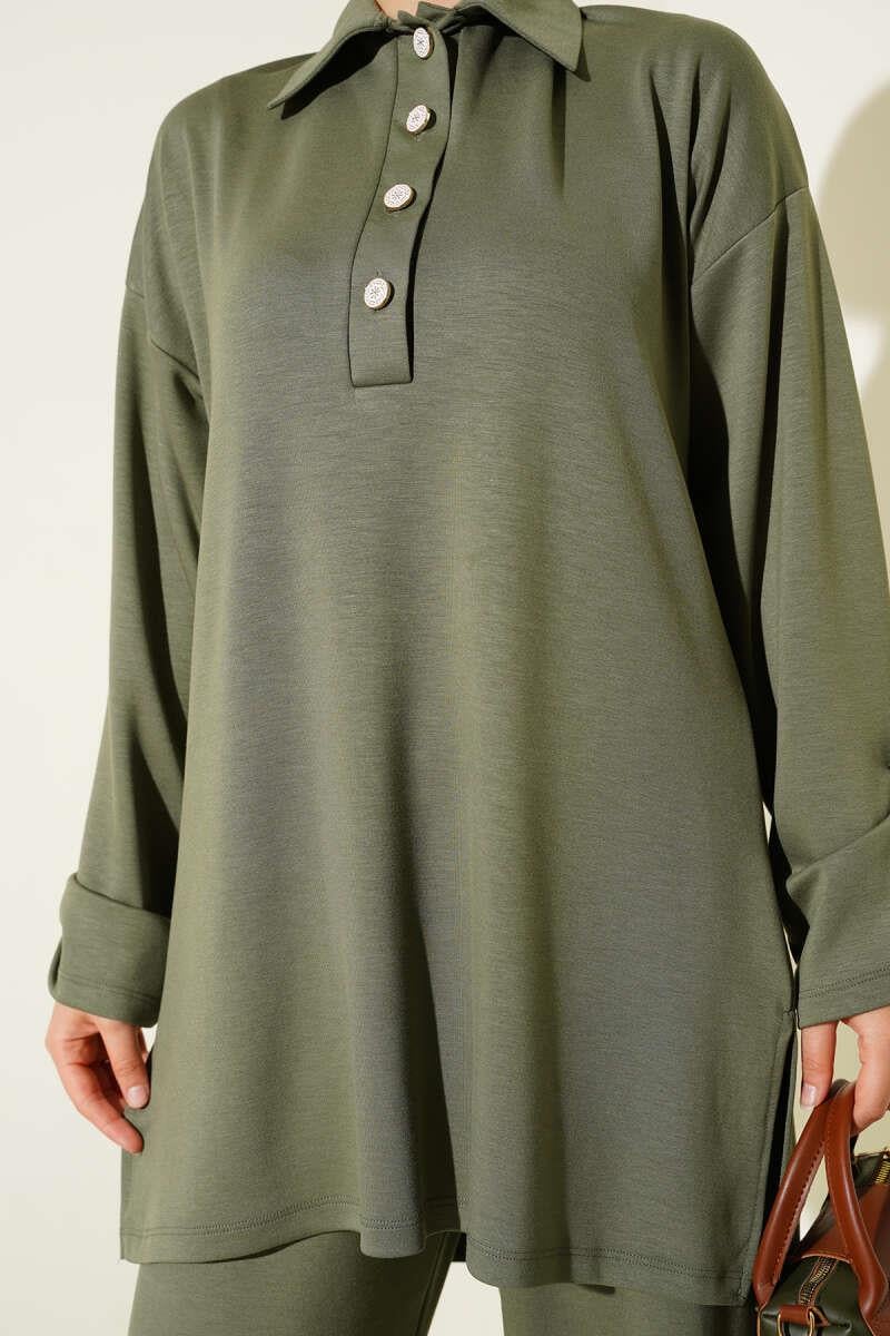 Loyşa Half Buttoned Tunic 2 Piece Set Almond Green (0829-5307-665903)