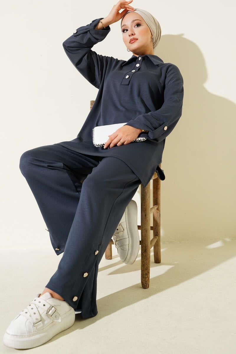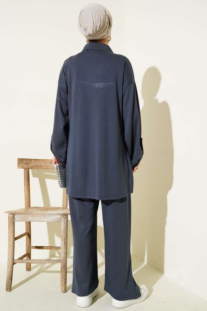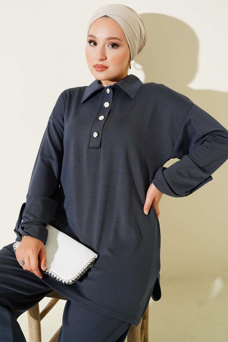 Loyşa Half Buttoned Tunic 2 Piece Set Smoke (0829-5307-665907)