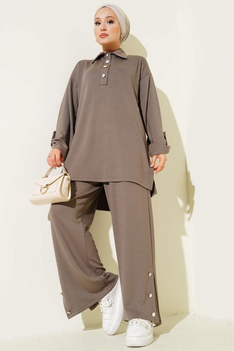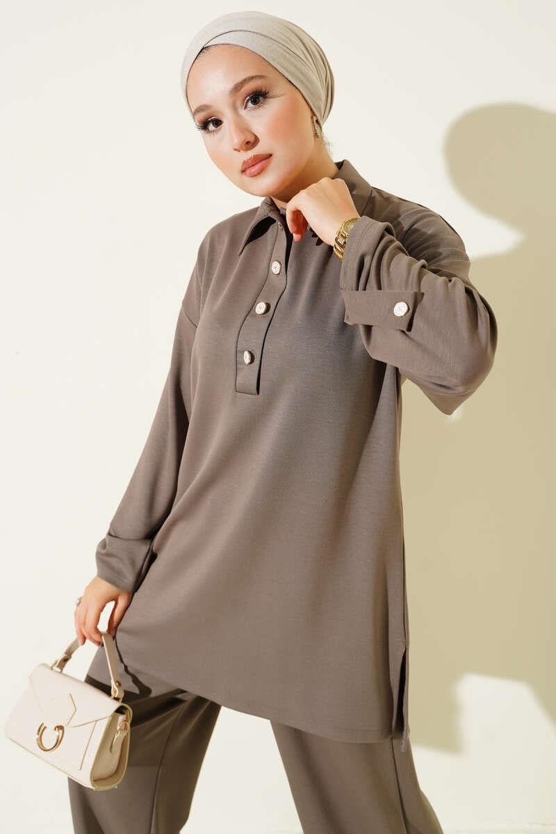Loyşa Half Buttoned Tunic 2 Piece Set Mink (0829-5307-665919)