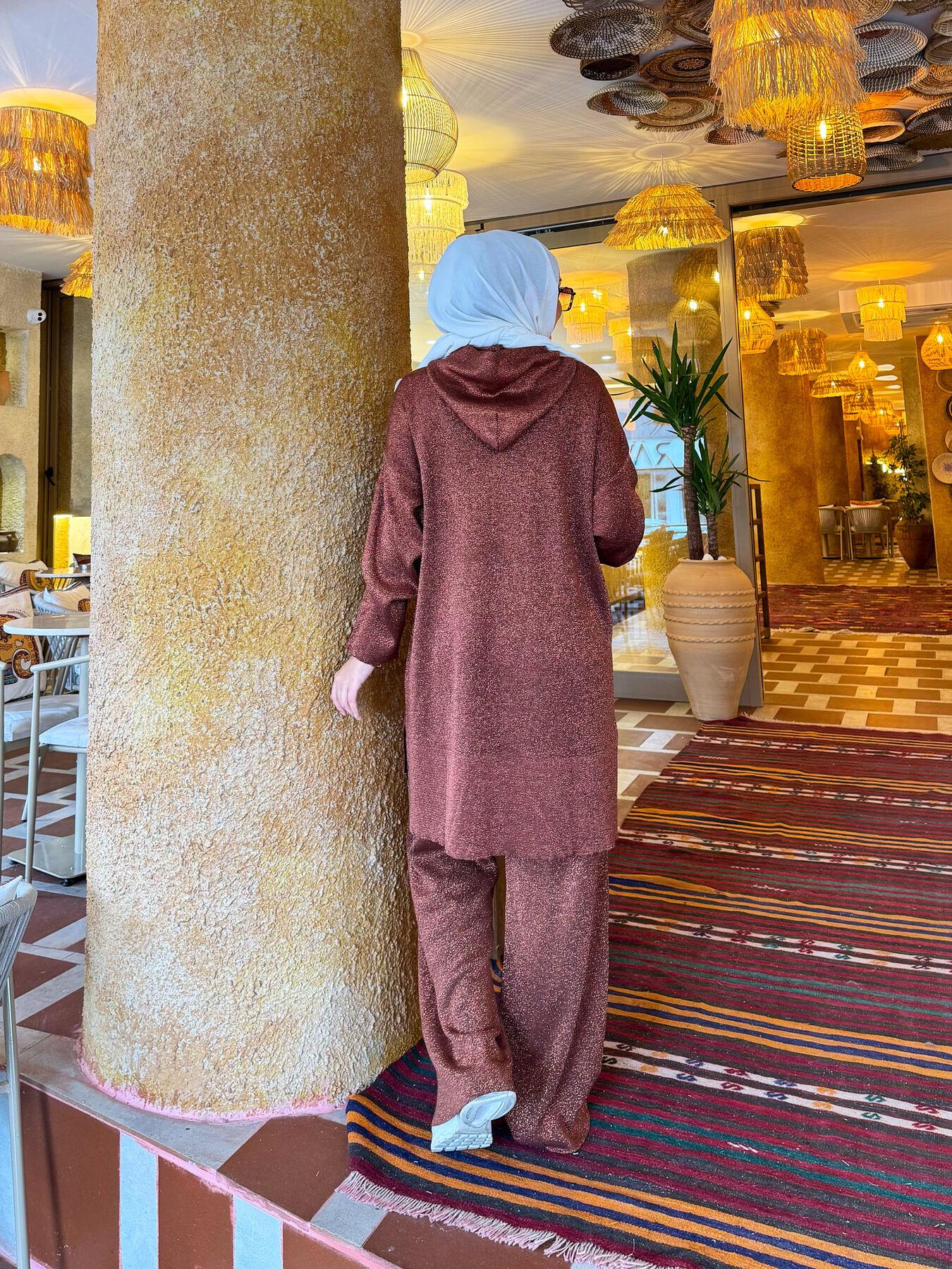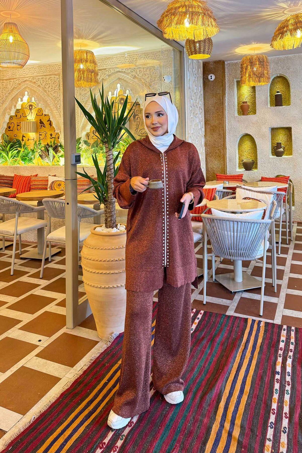 Luxury Stone Striped Glittery Knitwear 2 Piece Set Brown (125M00632567R25STD)