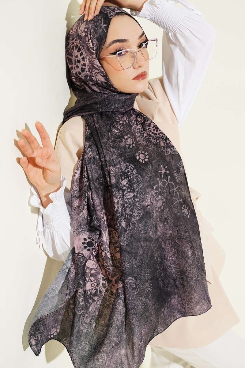 Mandala Pattern Bamboo Crash Scarf Pink Grey (8093-7575-746758)