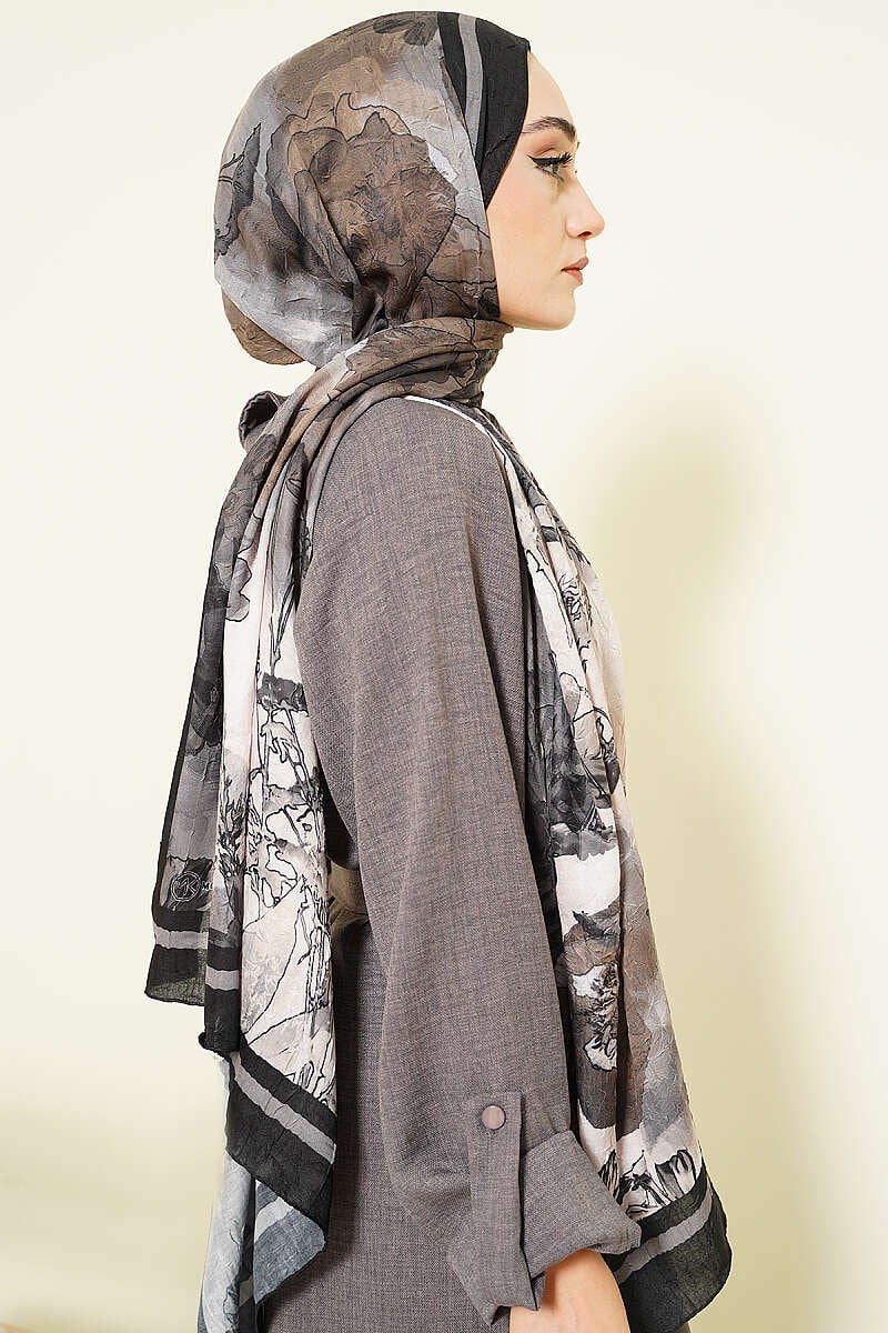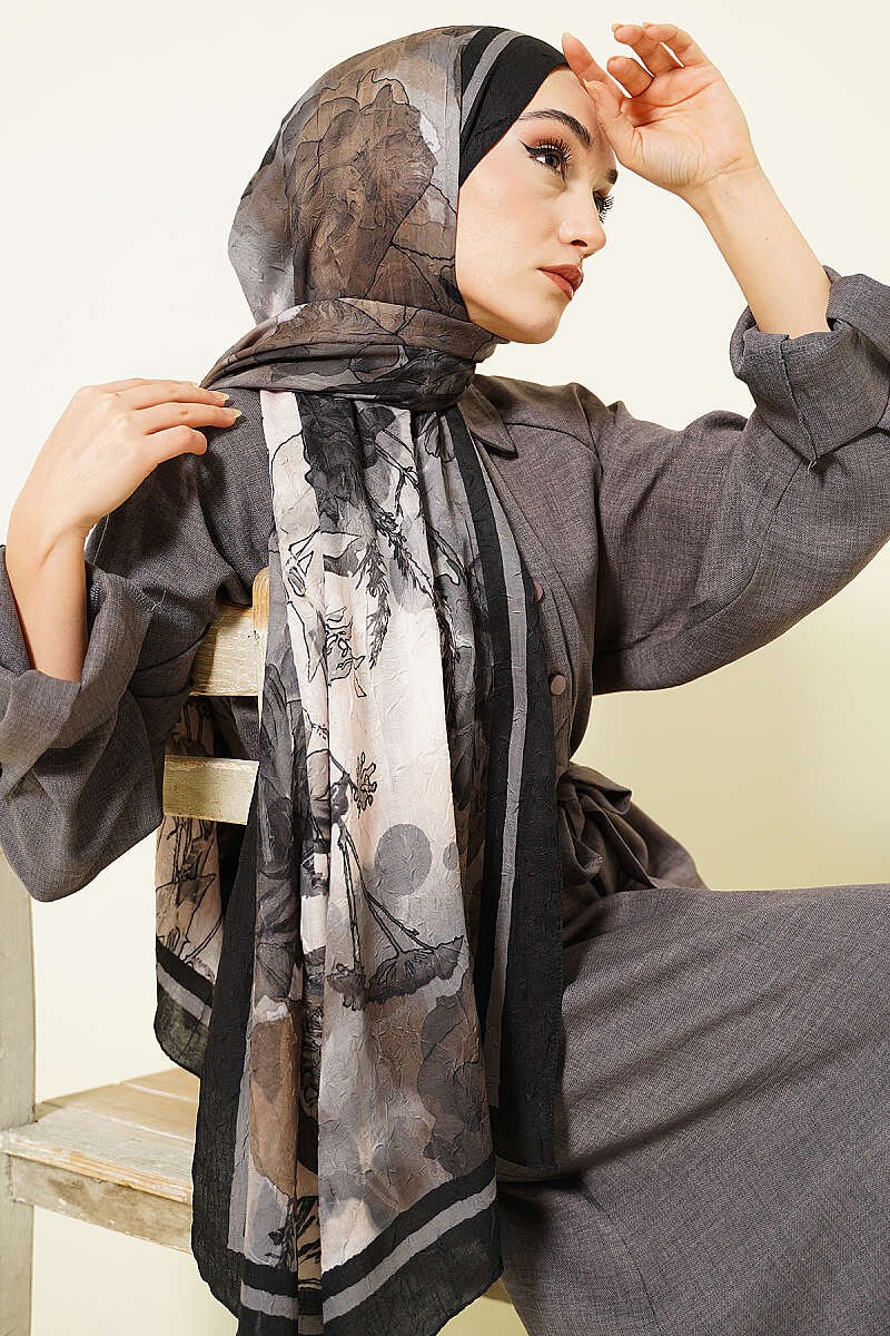 Melia Pattern Bamboo Crush Scarf Black (8093-7582-749789)