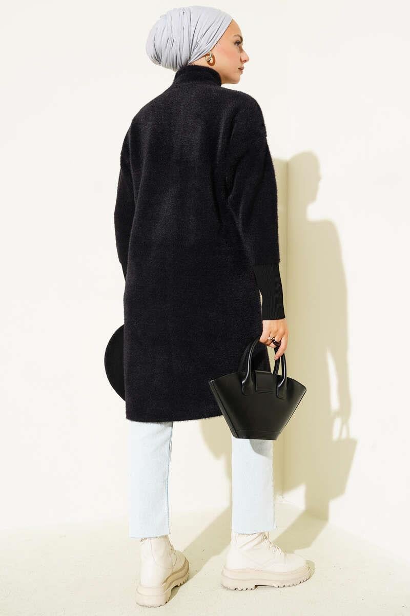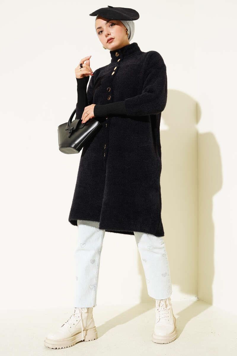 Bearded Cardigan with Metal Buttons, Black (6999-3265-676691)