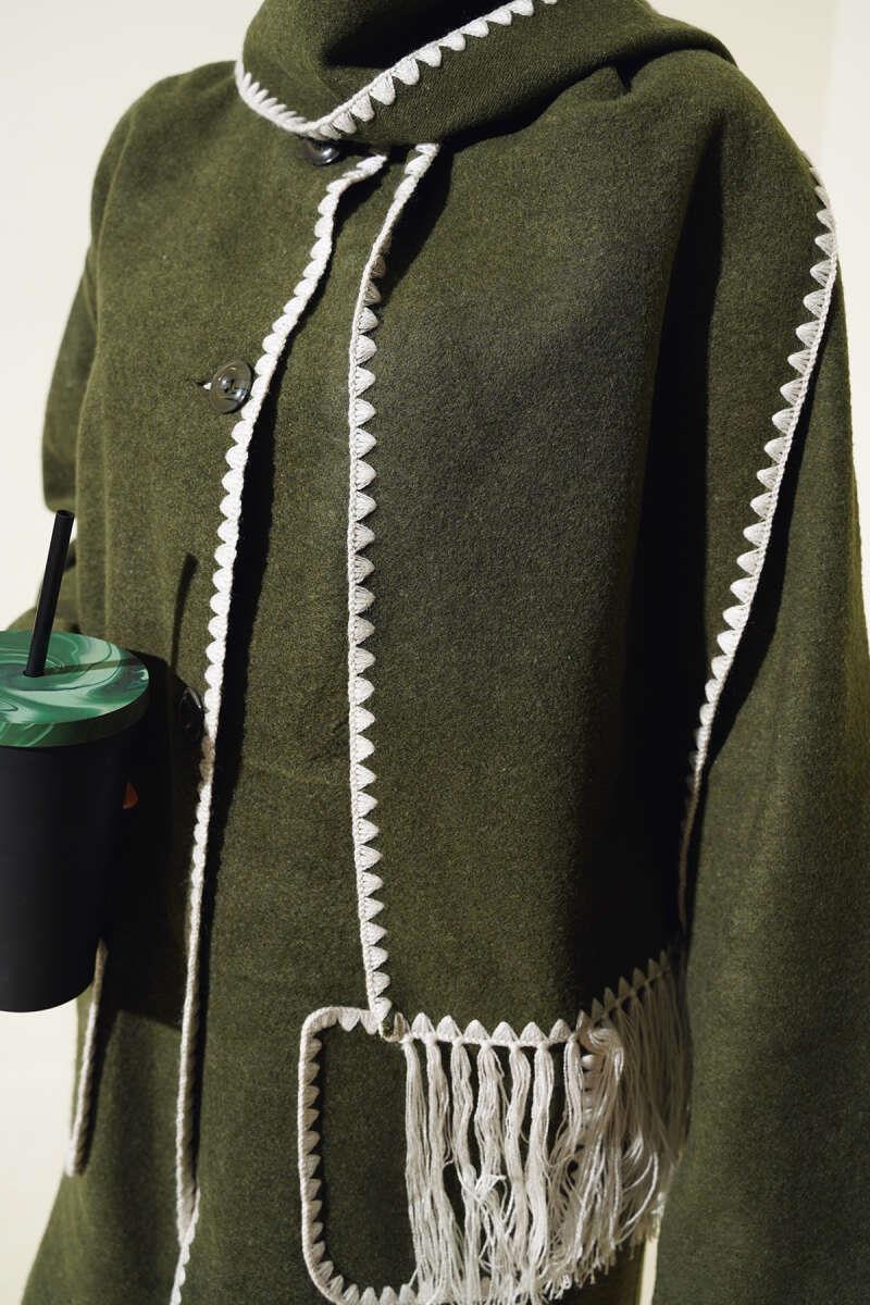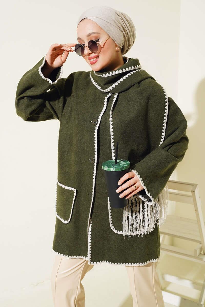 Mussel Stitched Scarf Jacket Khaki (0945-8008-581392)