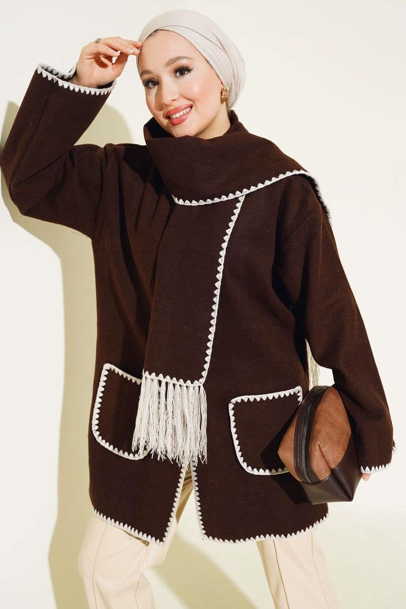 Mussel Stitched Scarf Jacket Brown (0945-8008-581394)