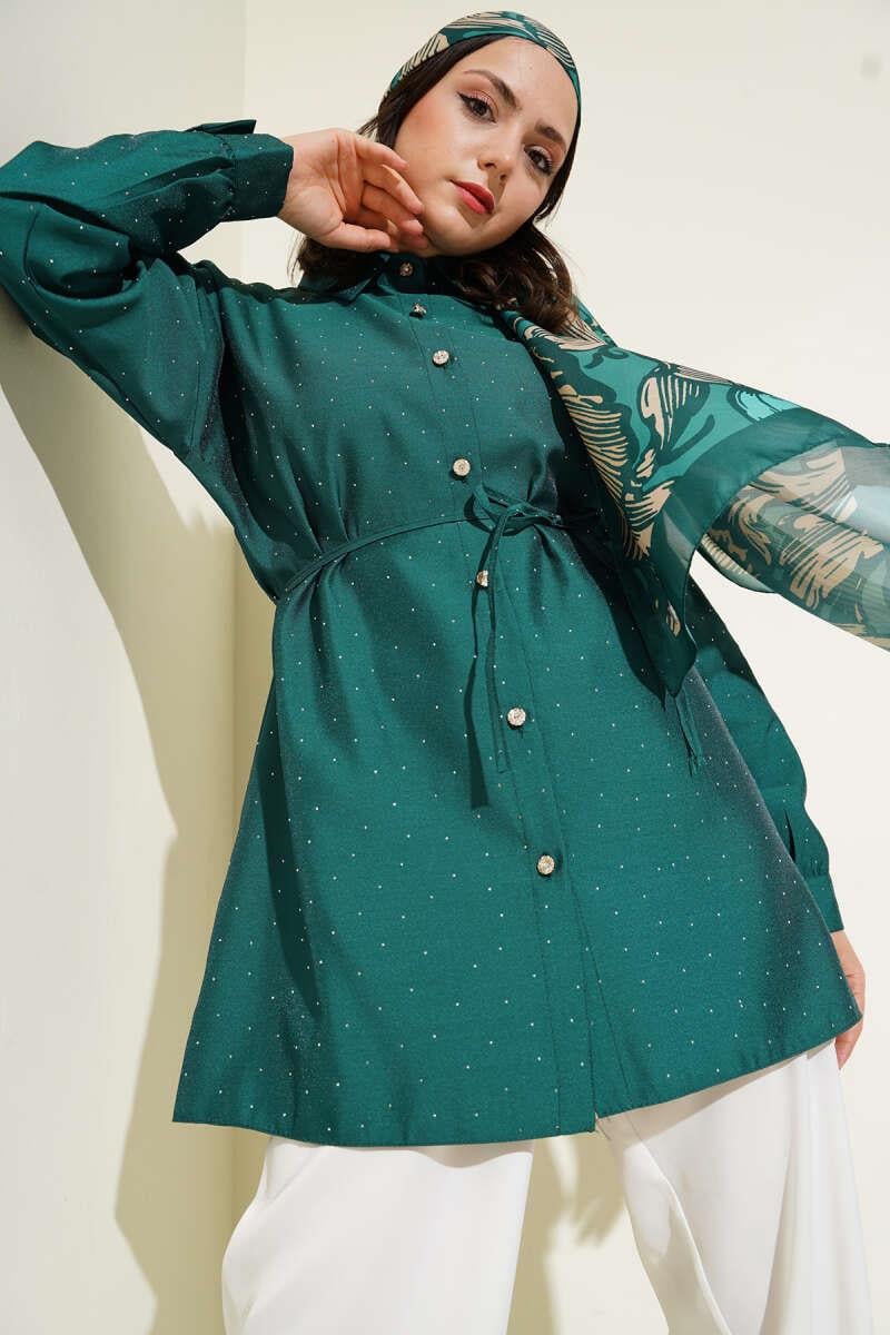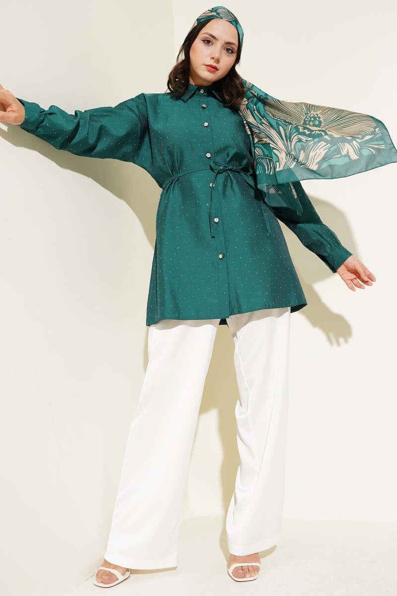 Green Shirt with Tiny Stone Decorations (0569-3187-626950)