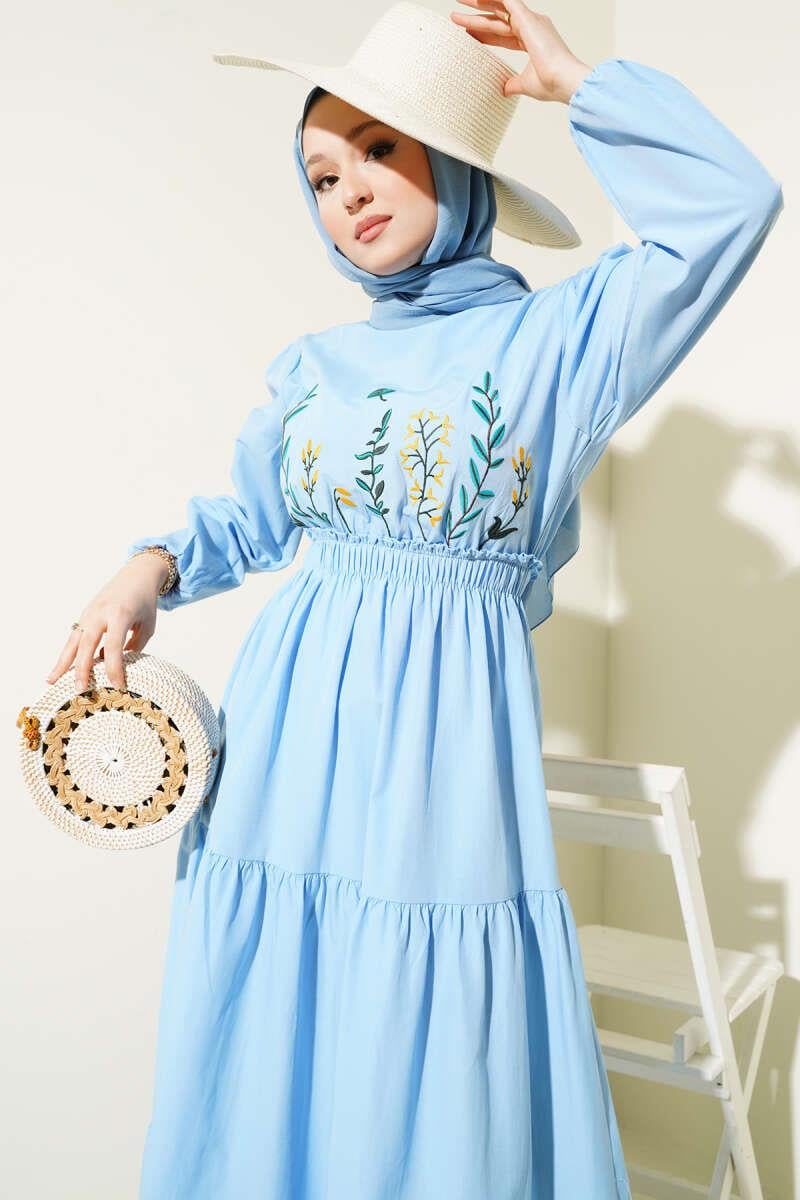 Embroidered Elastic Waist Layered Dress Blue (8089-7063-626273)
