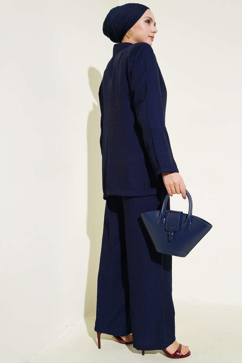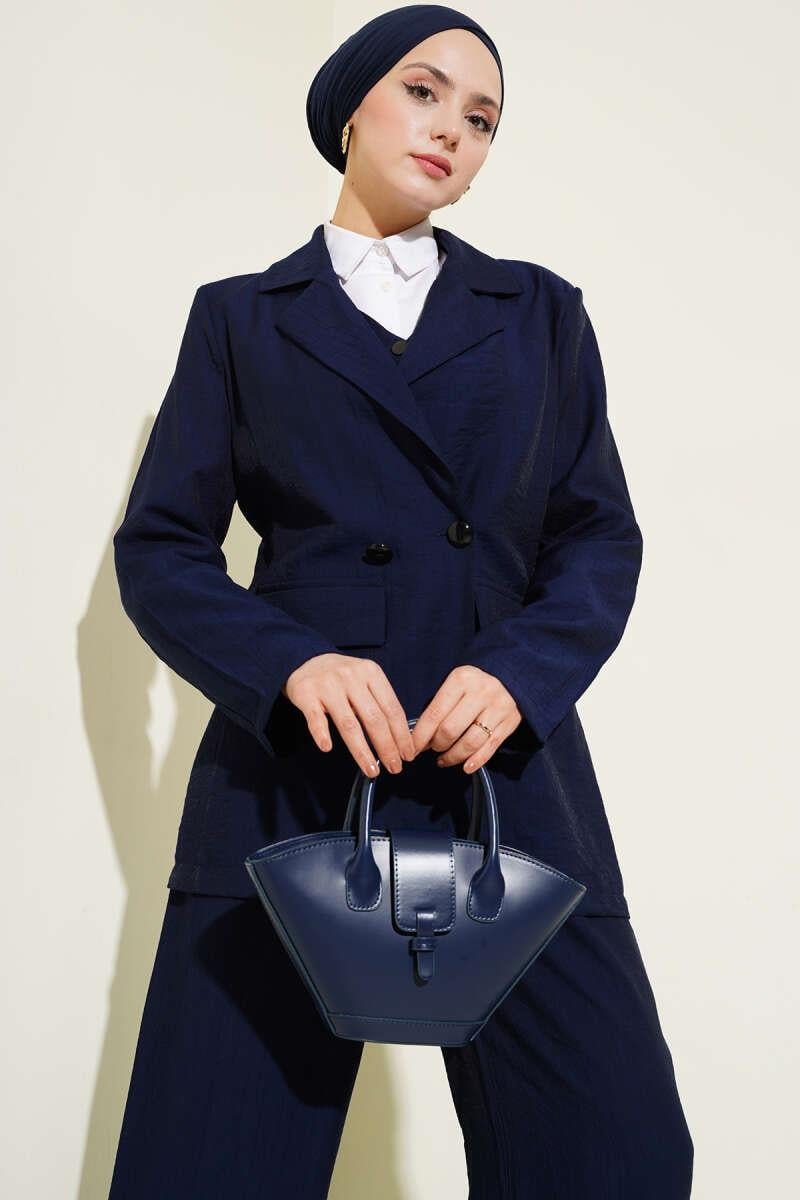 3 Piece Set with Shoulder Pads and Jacket and Vest Navy Blue (0643-6329-613373)