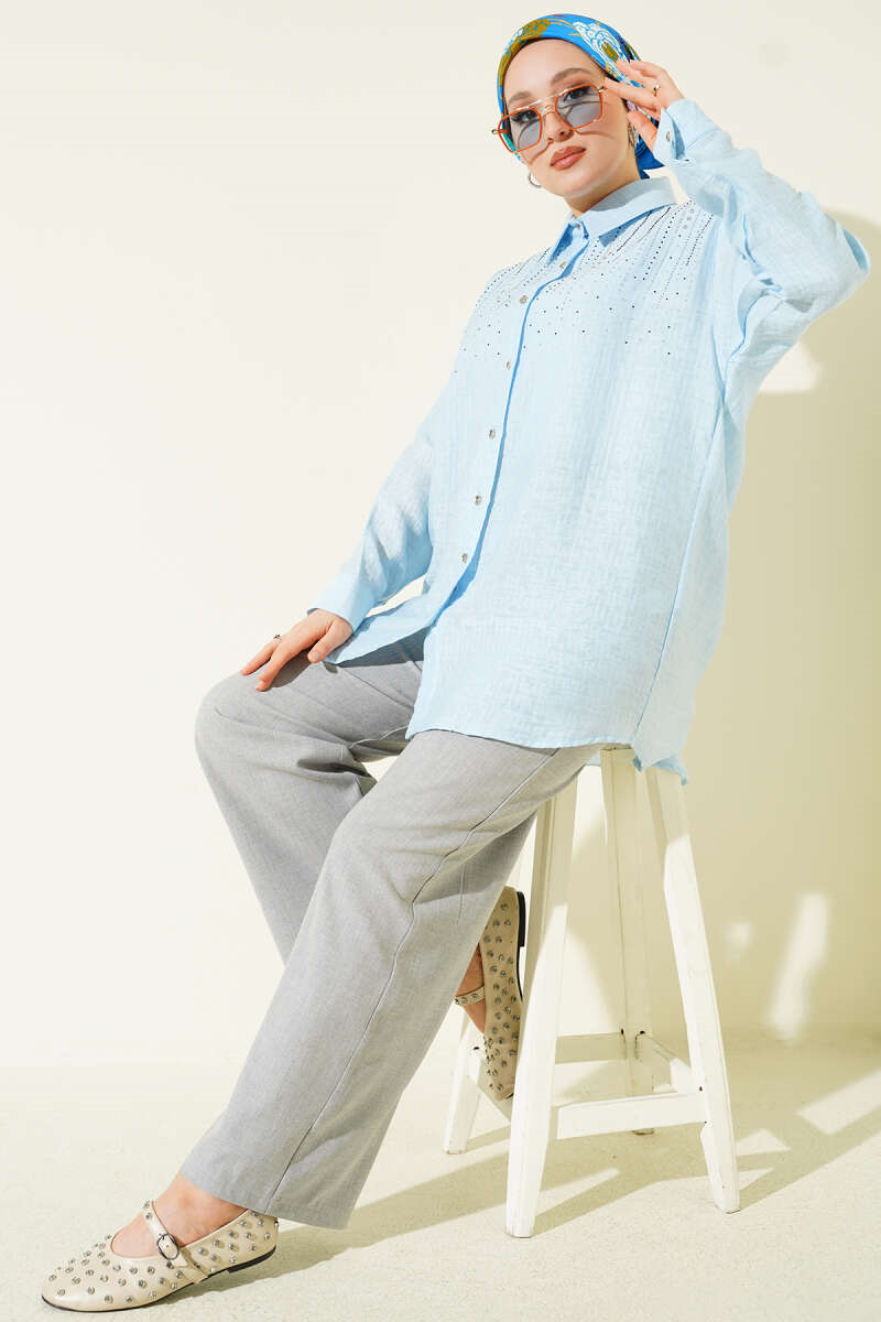 Shoulder Stone Embellished Shirt Blue (0674-866-725223)
