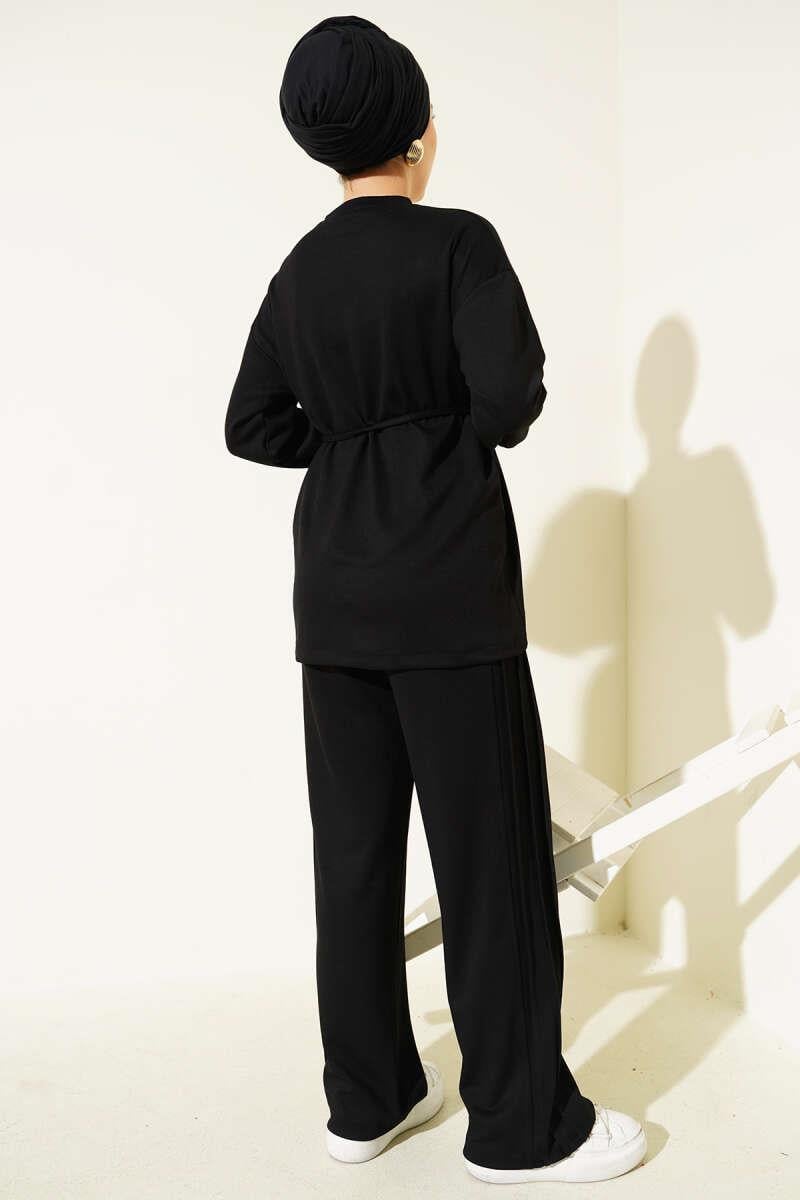 Button Detailed Front Laced 2 Piece Set Black (0428-8218-676330)