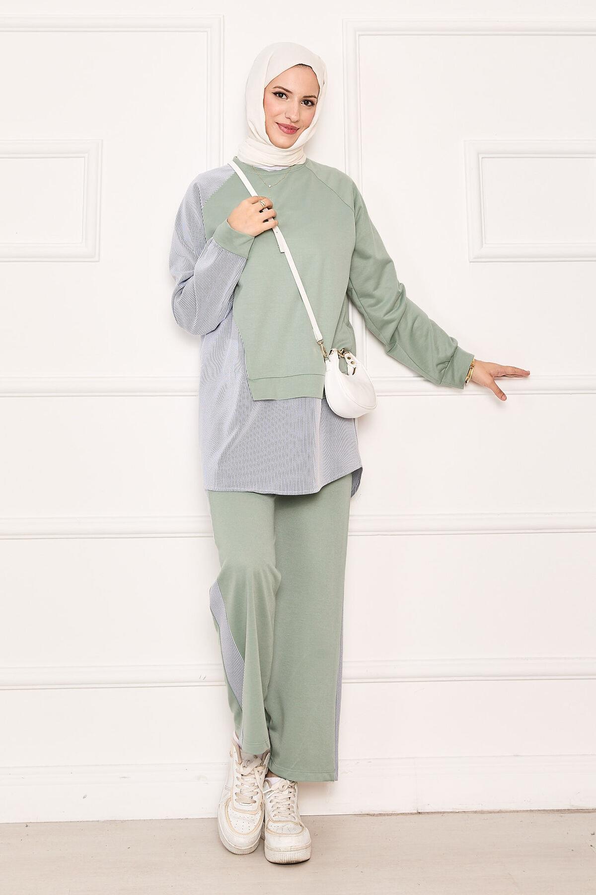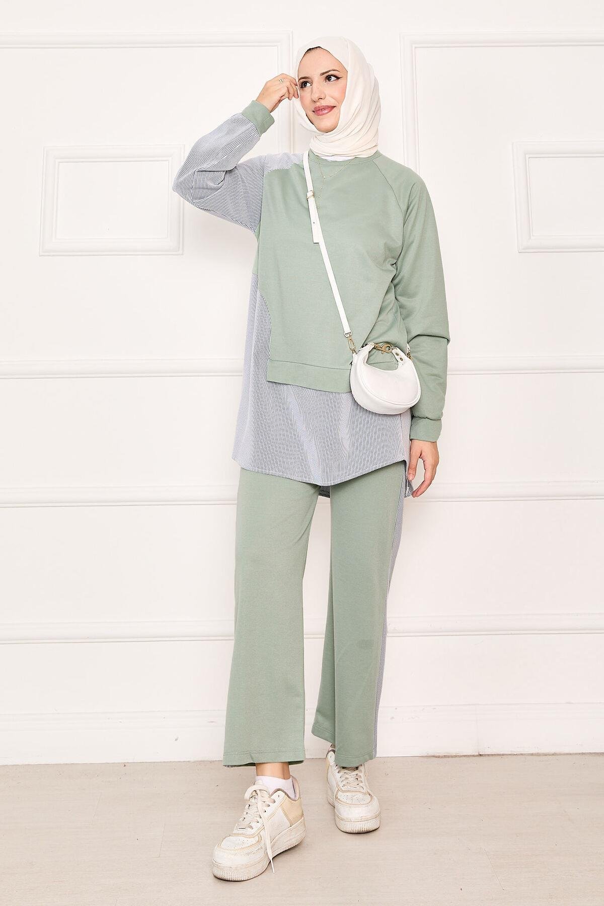Mint 2 Piece Set with Asymmetrical Stripe Garnish on the Front (125M00614566R4038)