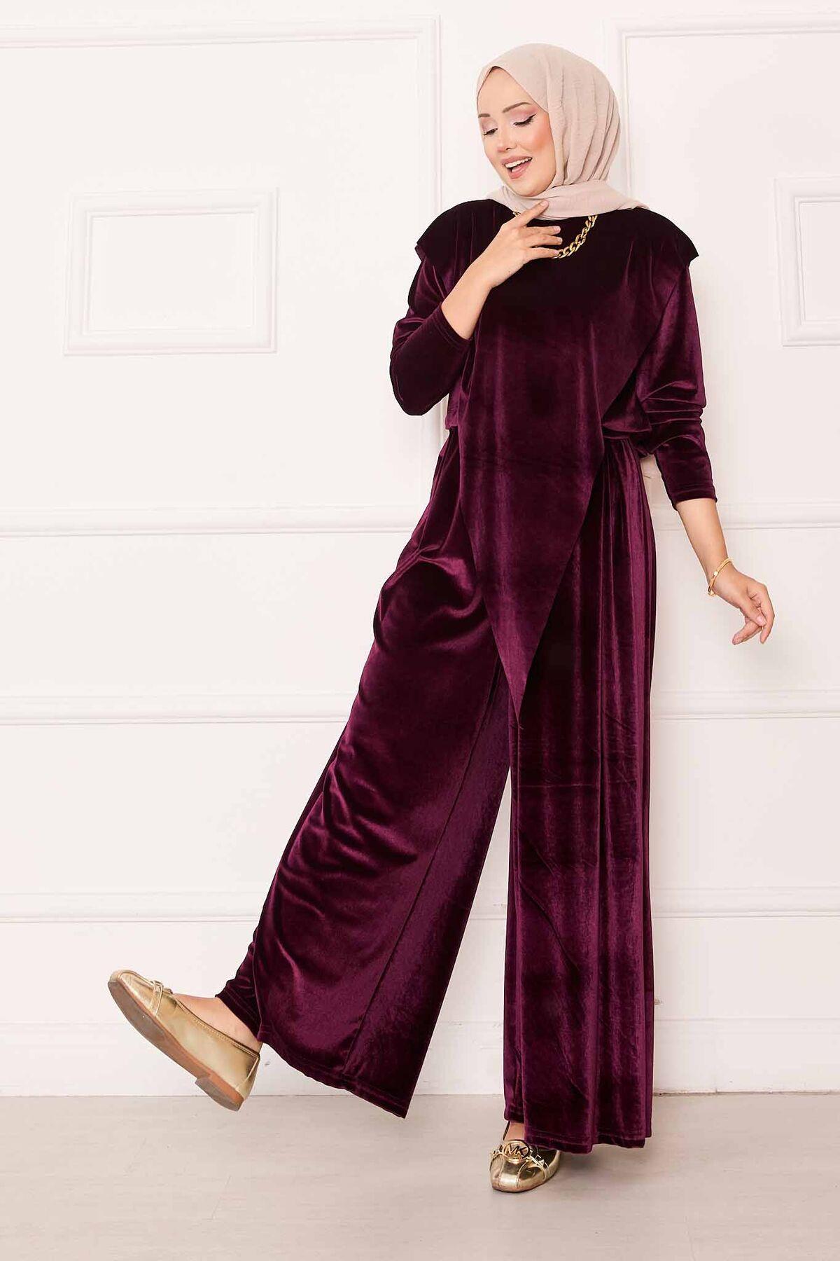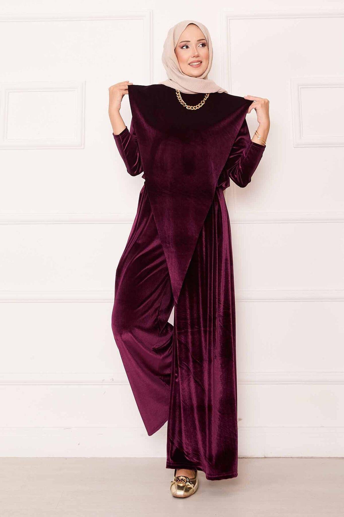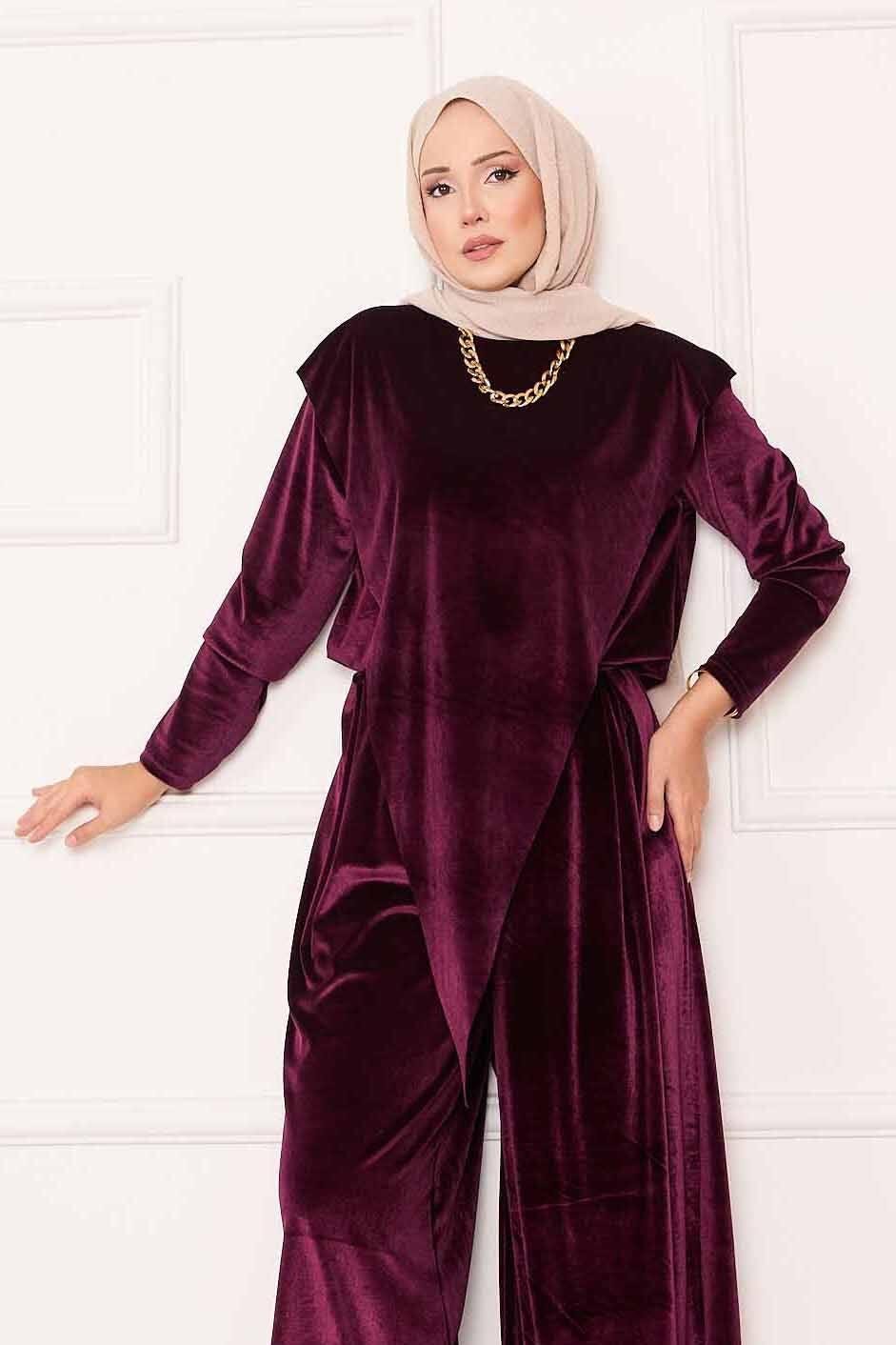 Velvet 2 Piece Set with Asymmetrical Front Detail (125M00611031R421)