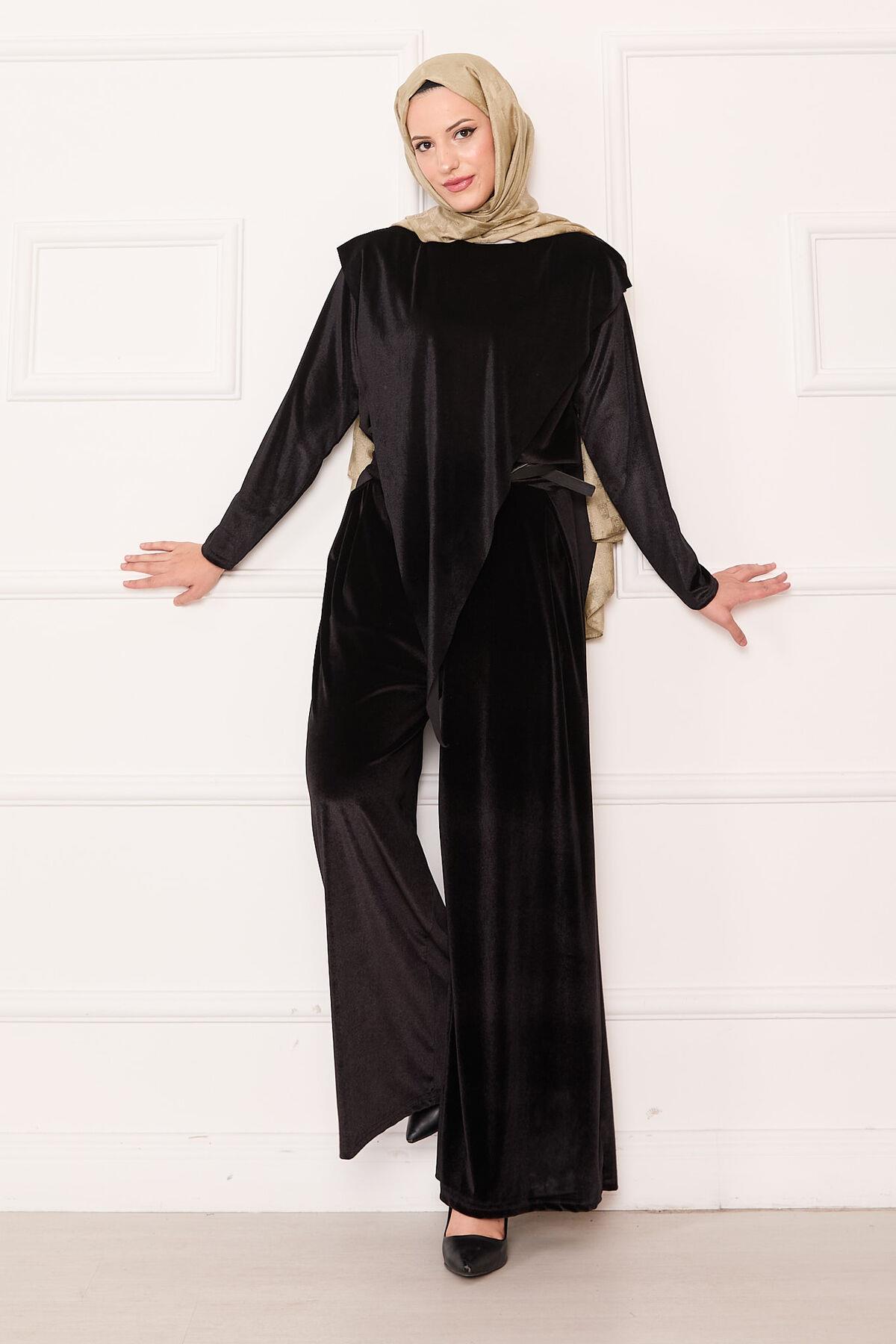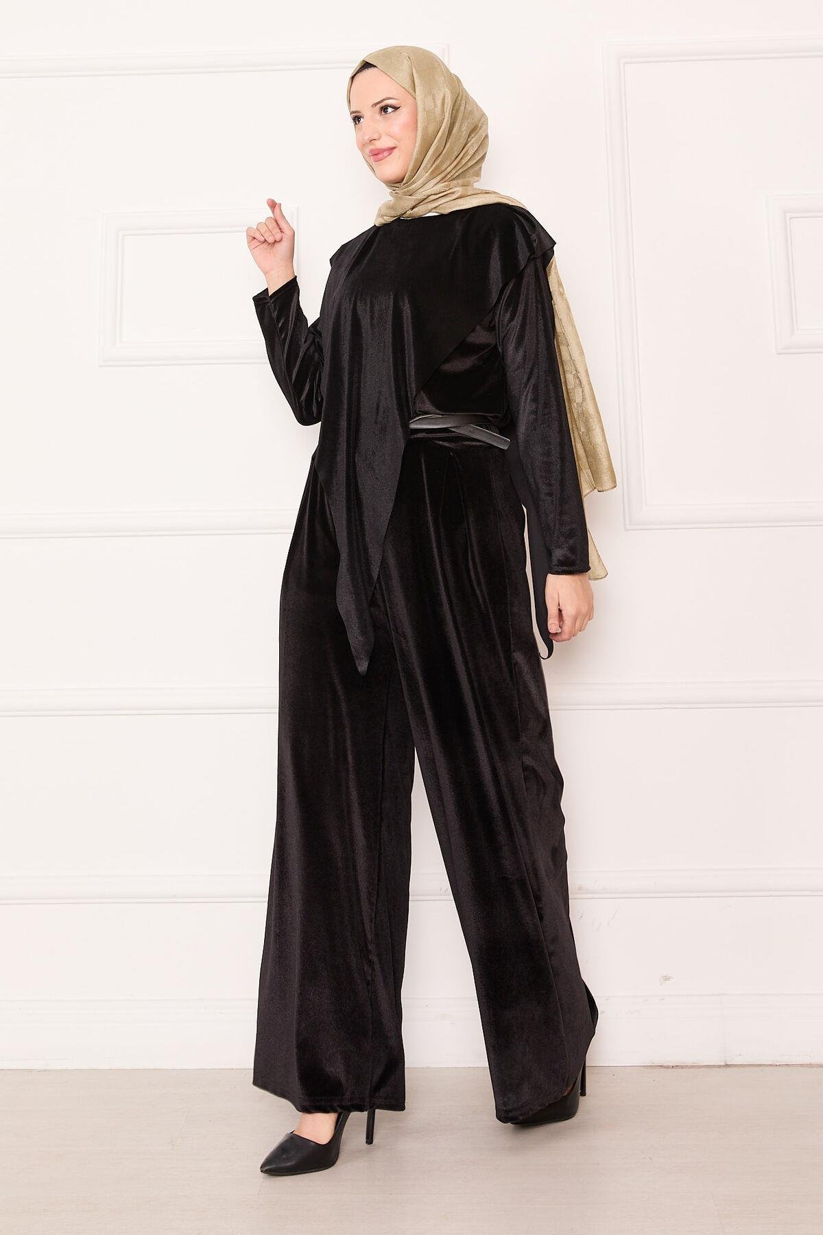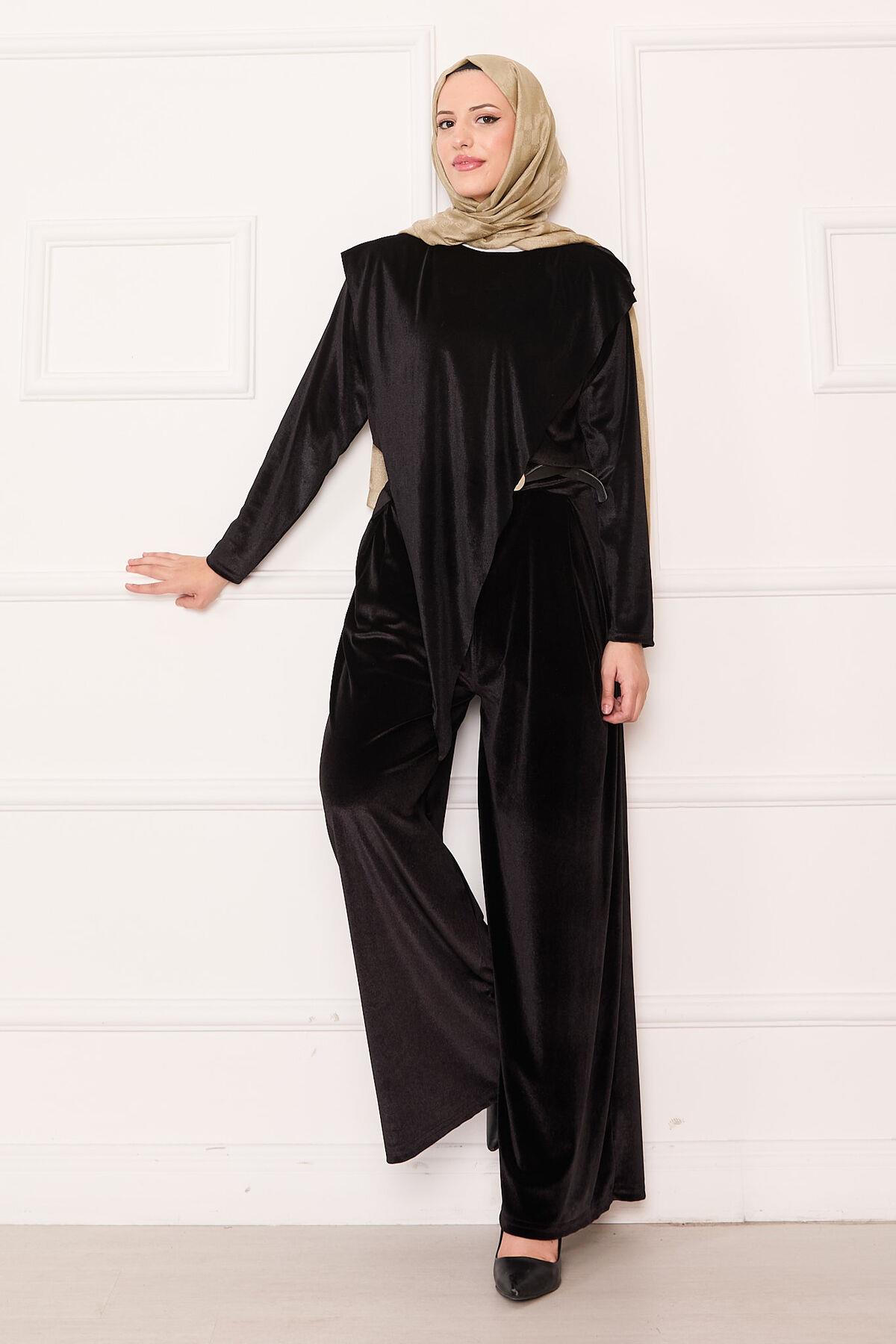 Velvet 2 Piece Set with Asymmetrical Front Detail, Black (125M00611031R521)