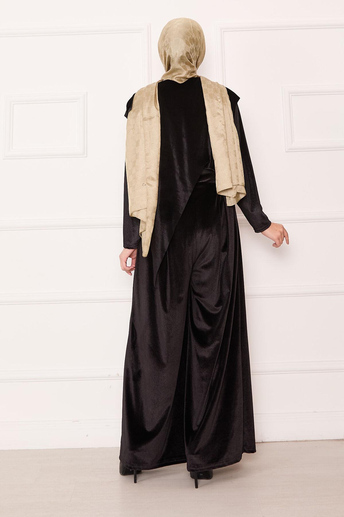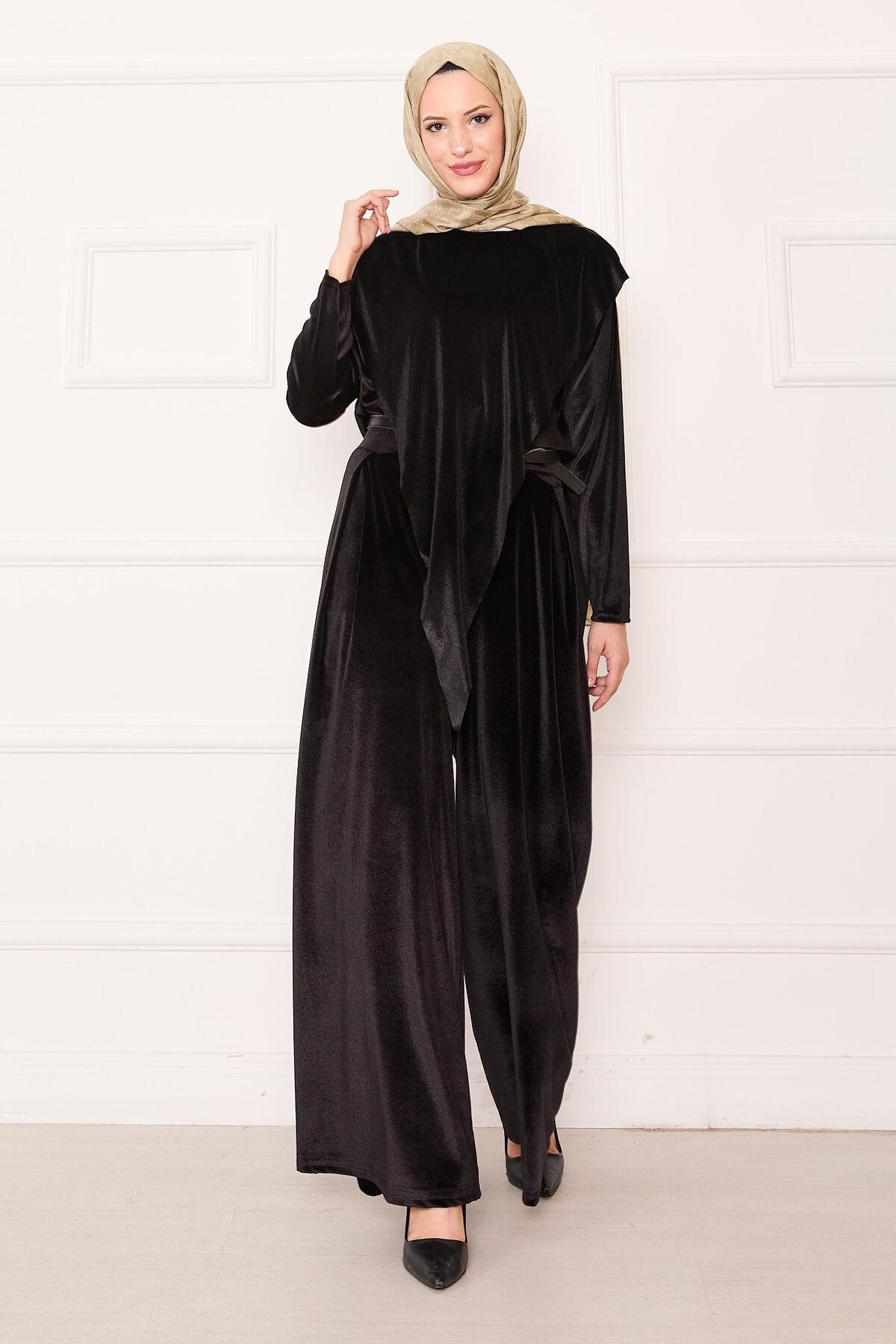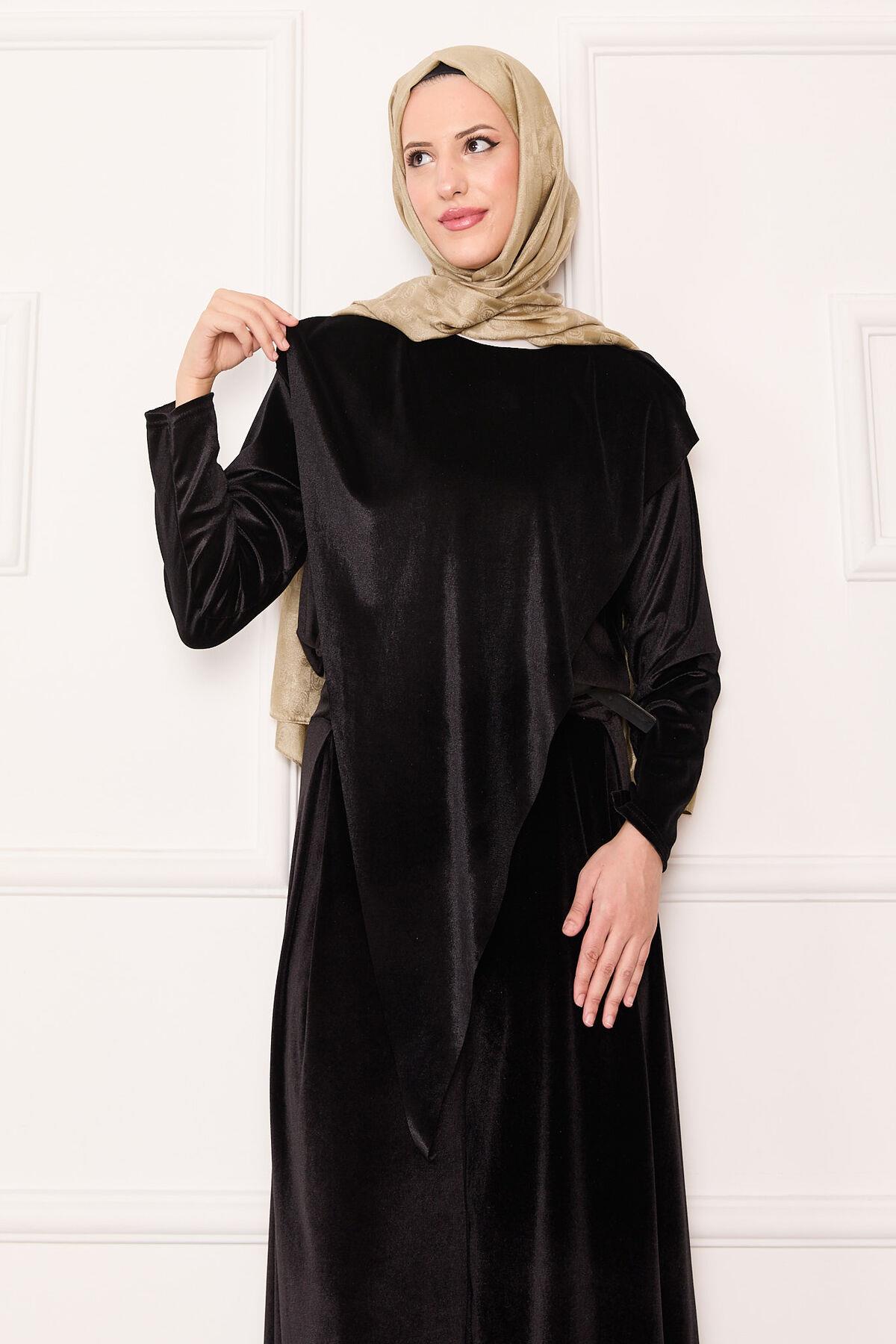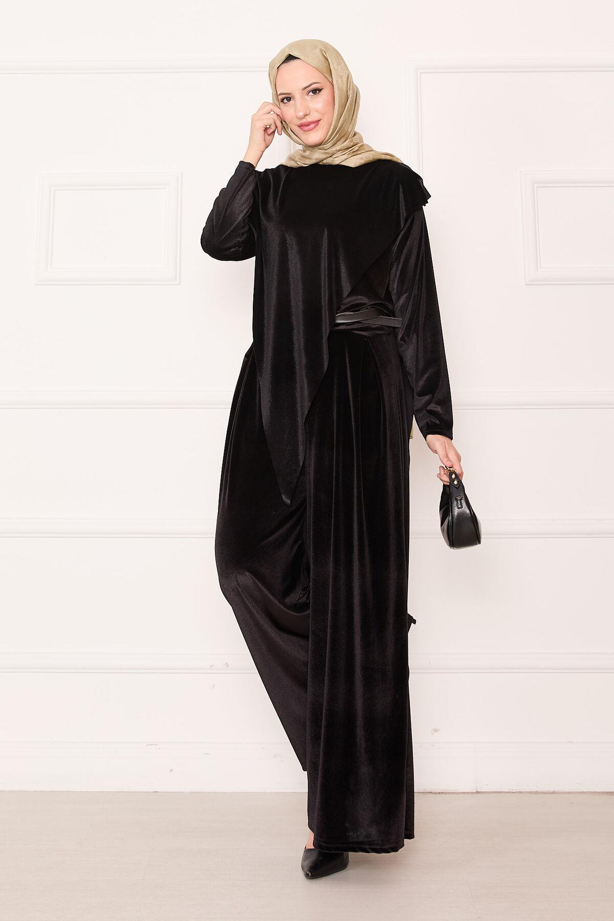 Velvet 2 Piece Set with Asymmetrical Front Detail, Black (125M00611031R521)