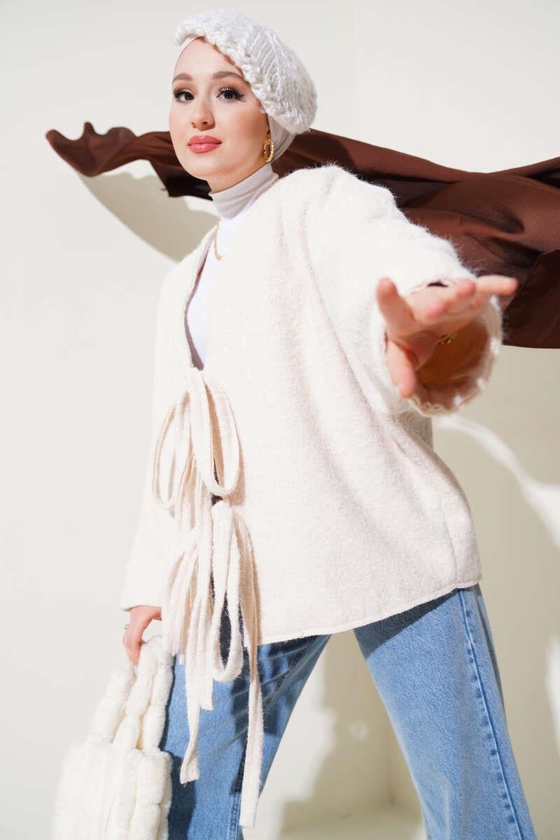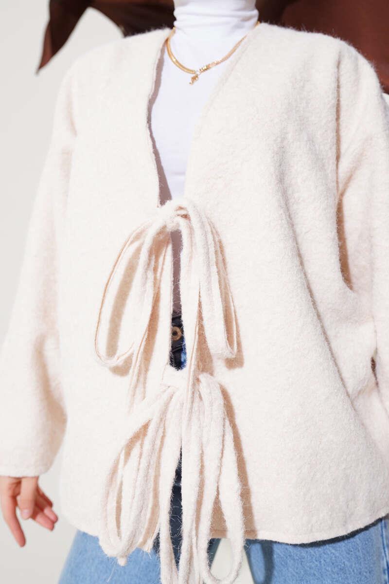 Tied Front Cashmere Kimono Stone (8900-24111-669008)