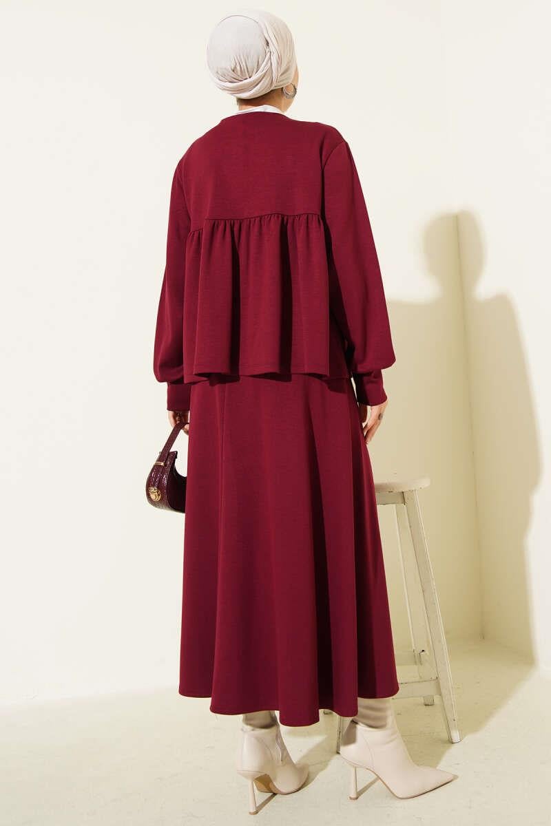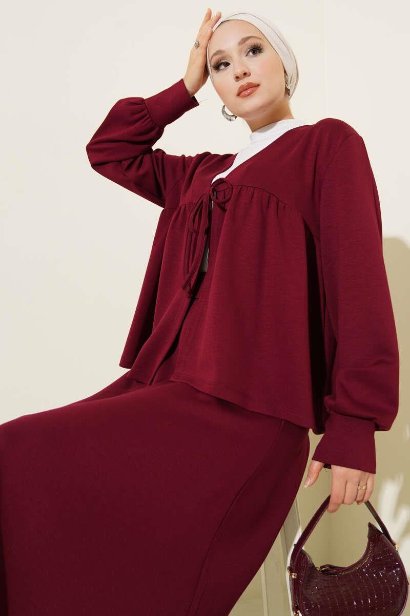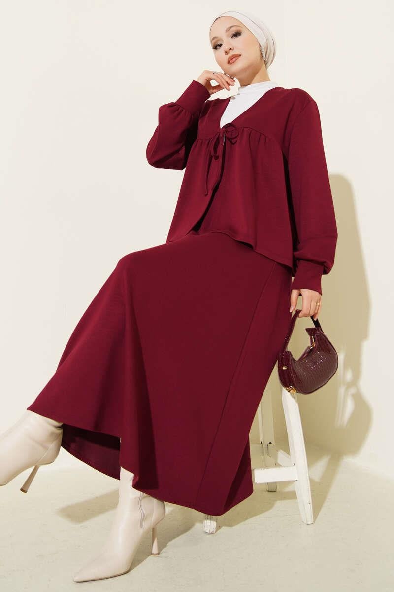 2 Piece Set with Loysha Skirt and Rope Tie in Front, Burgundy (0319-7084-669957)