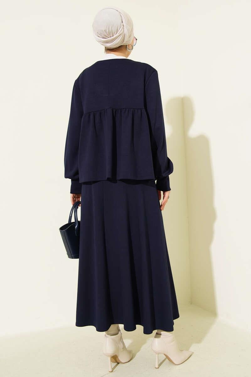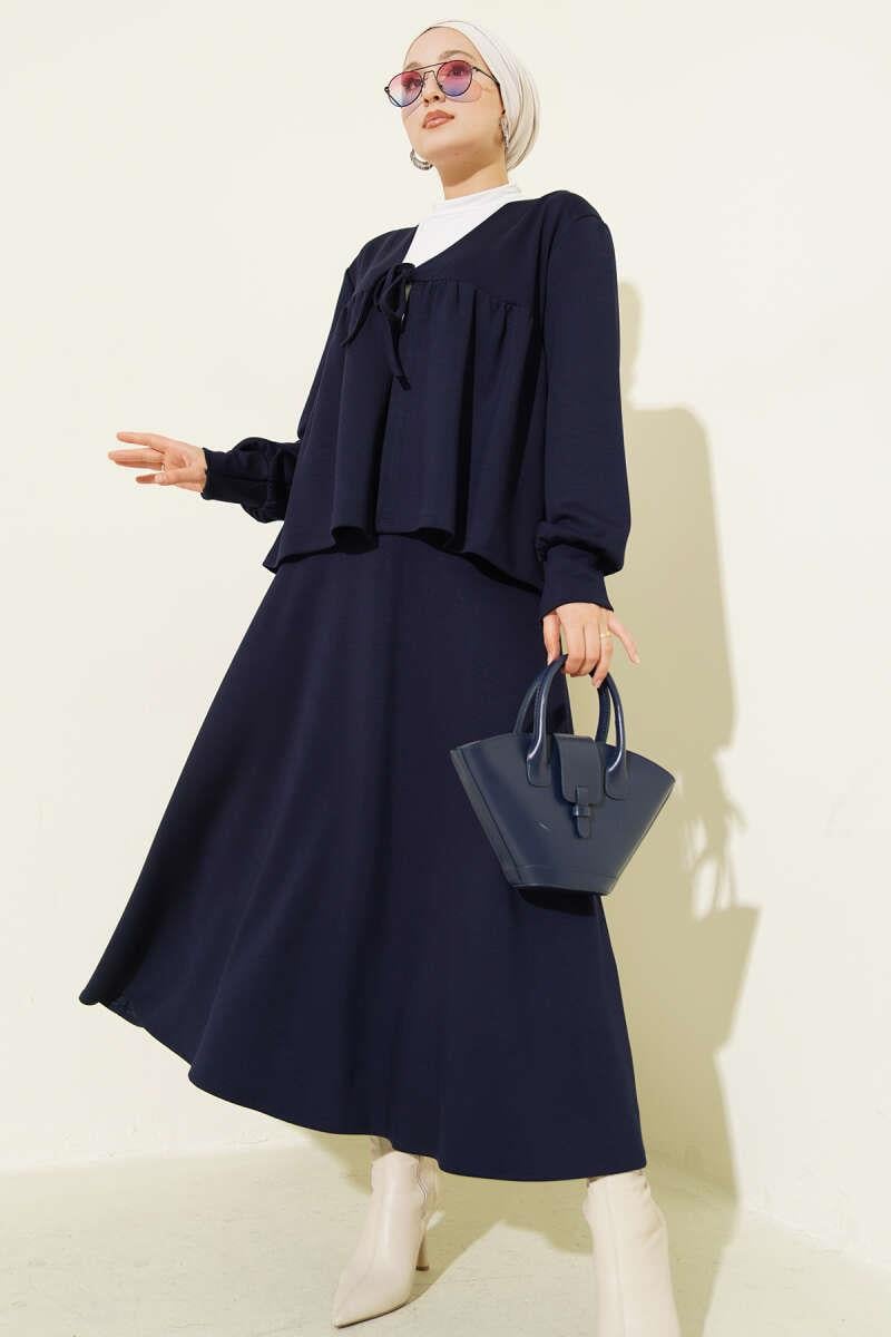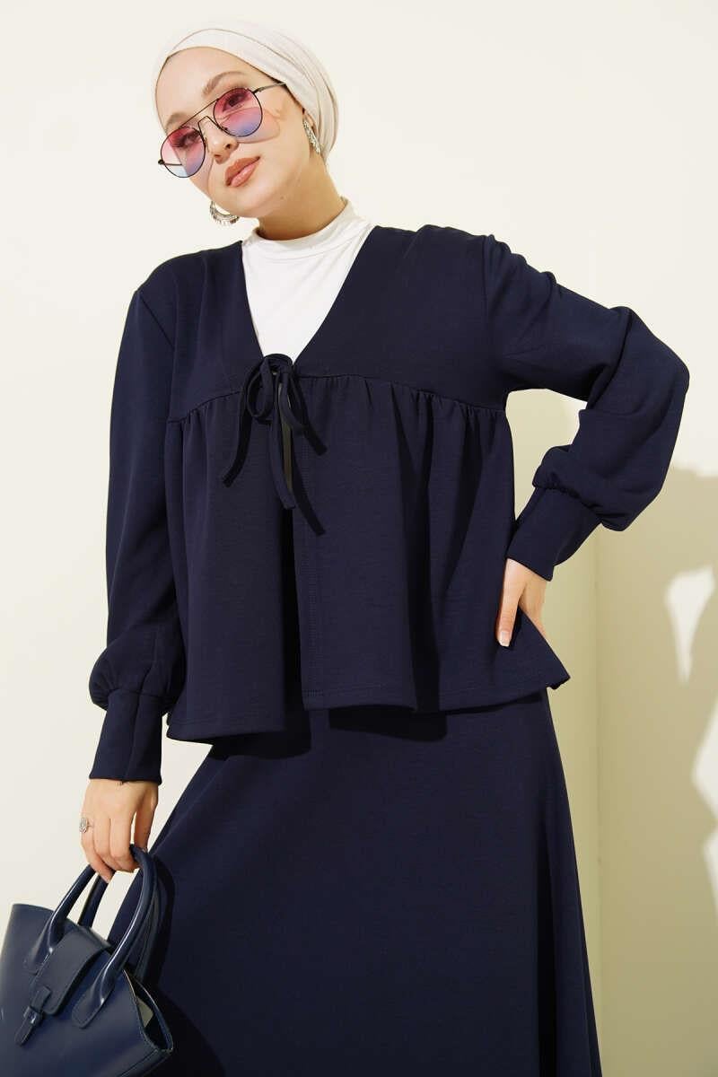 2 Piece Set with Loysha Skirt and Rope Tie in Front, Navy Blue (0319-7084-669965)