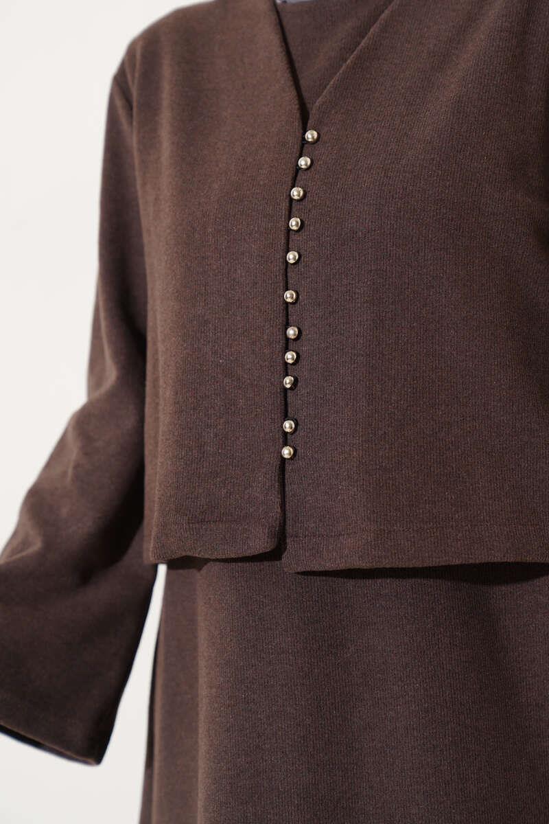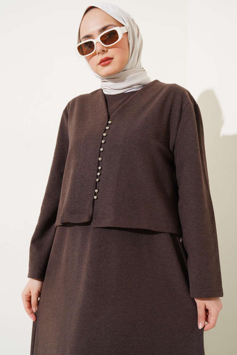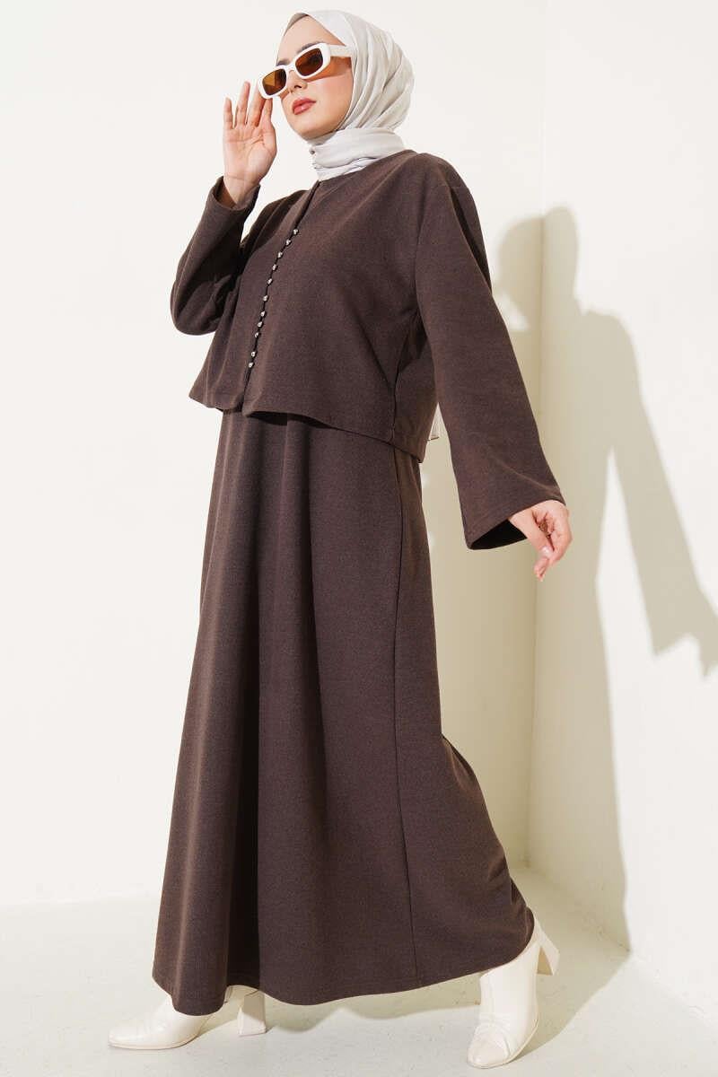 Mini Buttoned Front Dress 2 Piece Set Brown (0582-12977-595083)