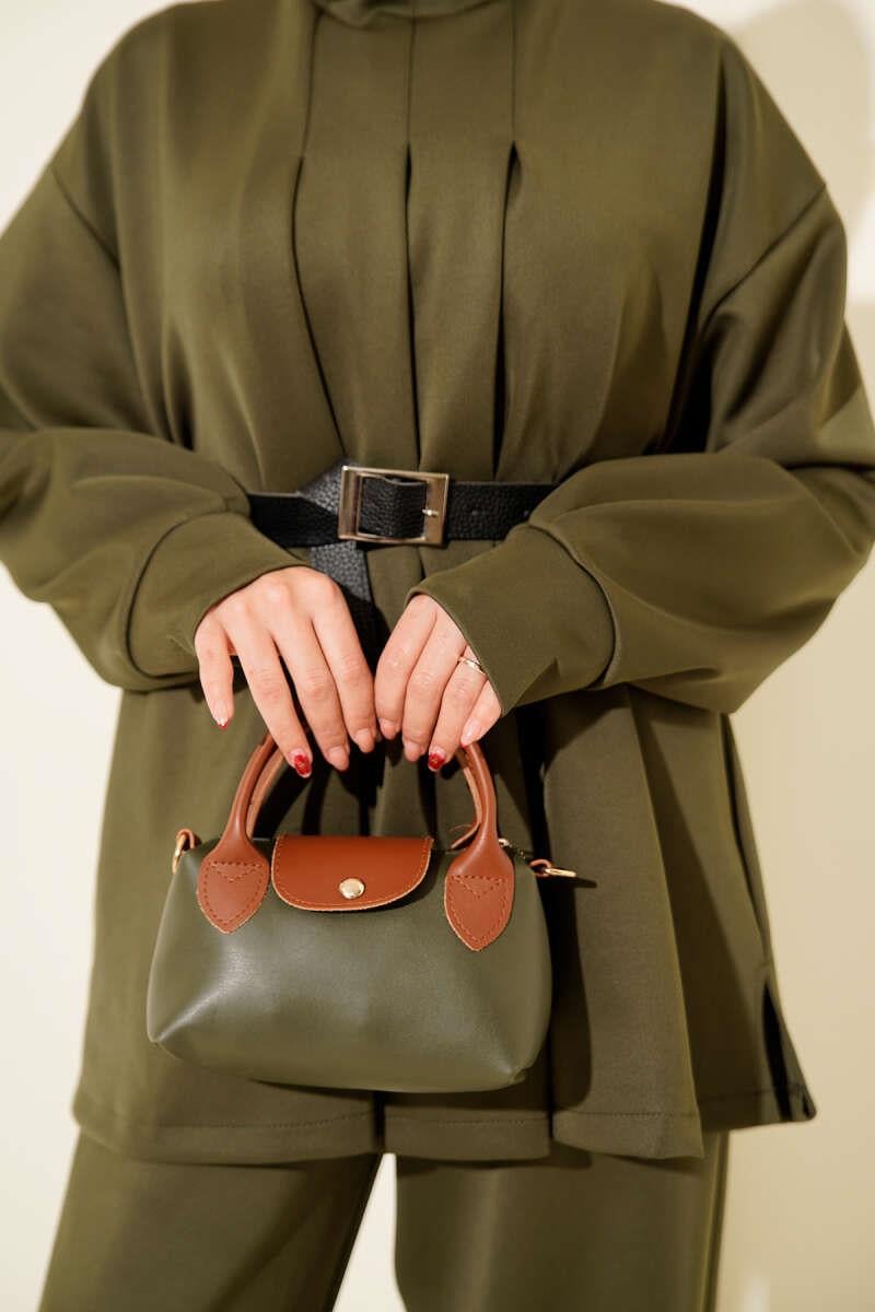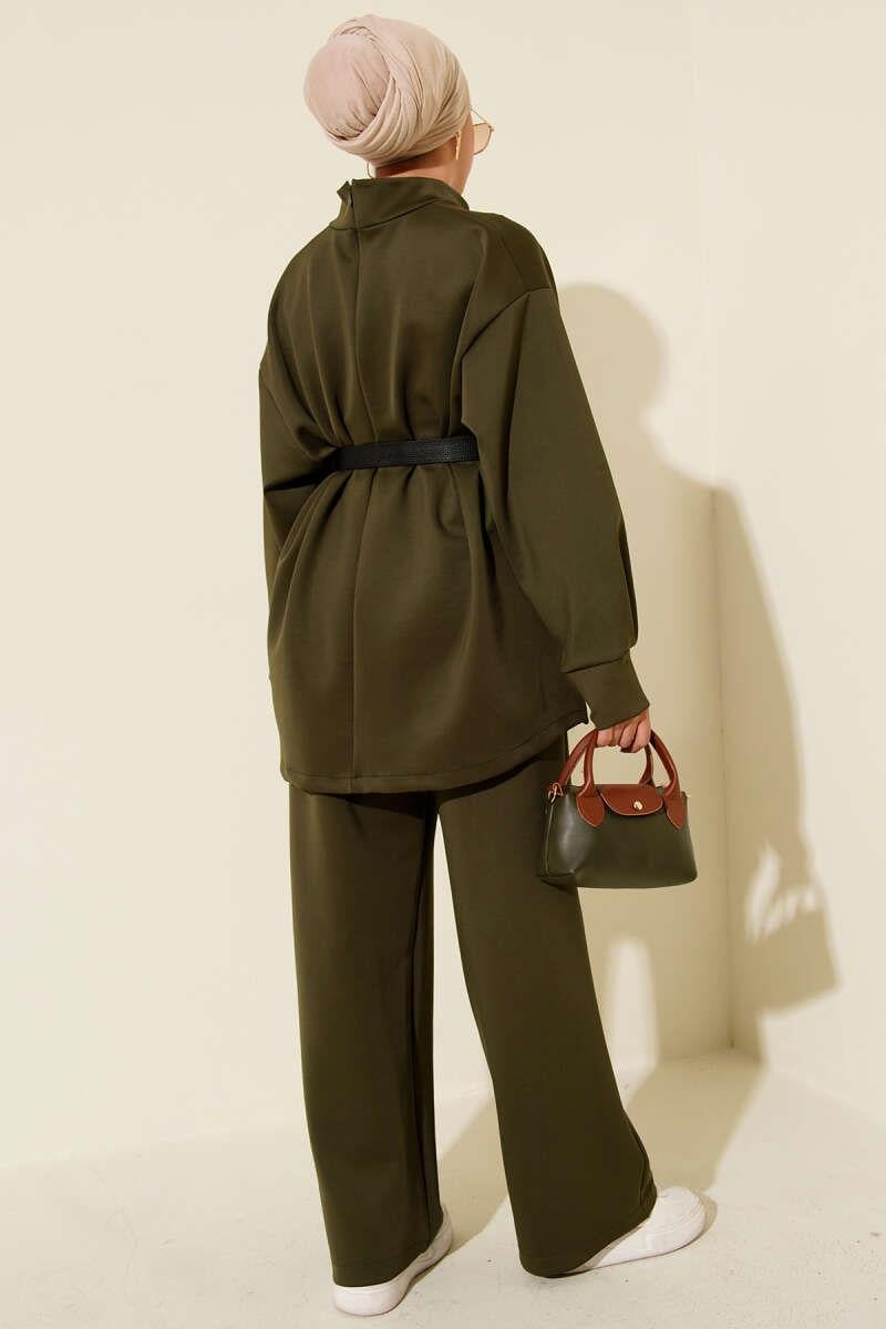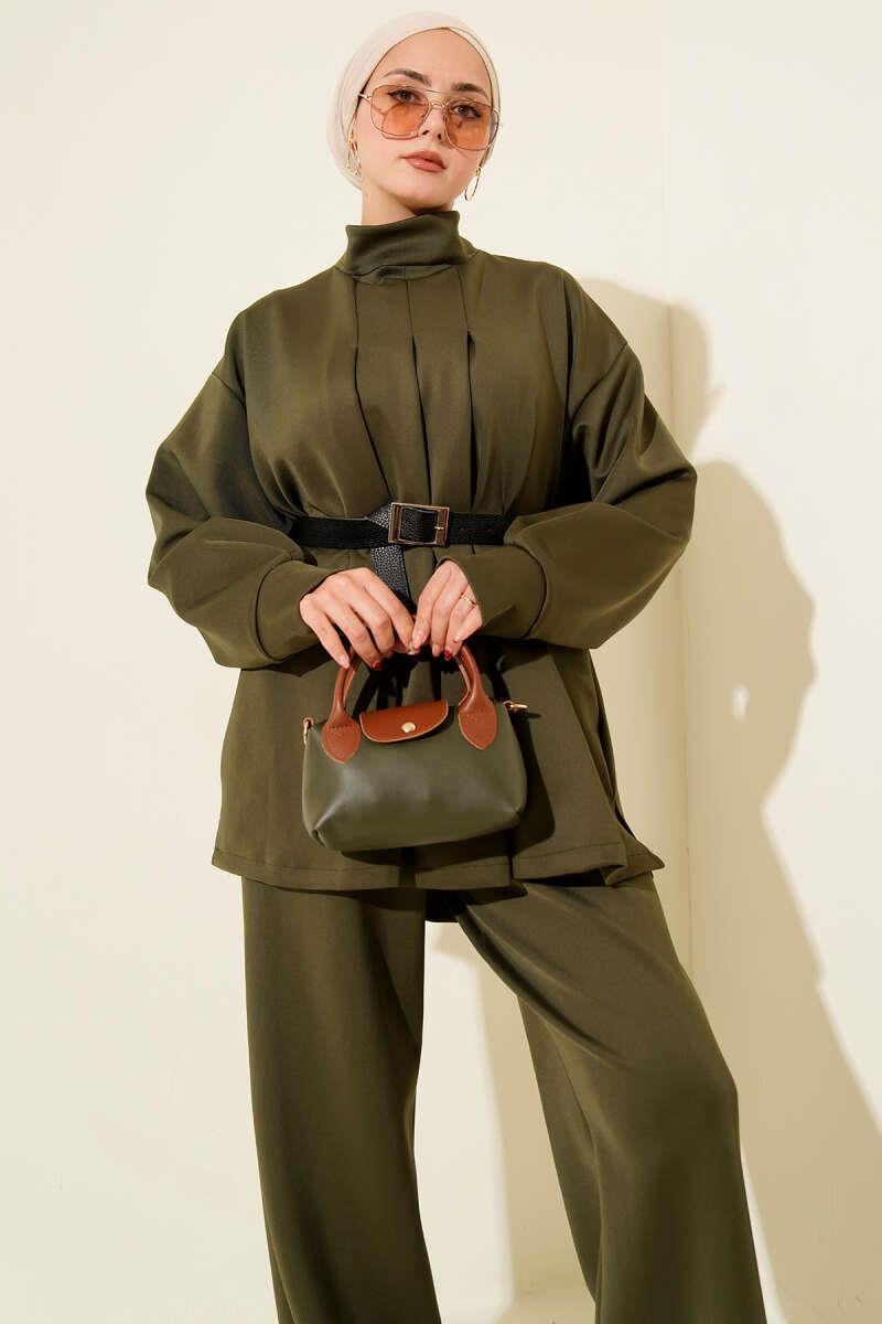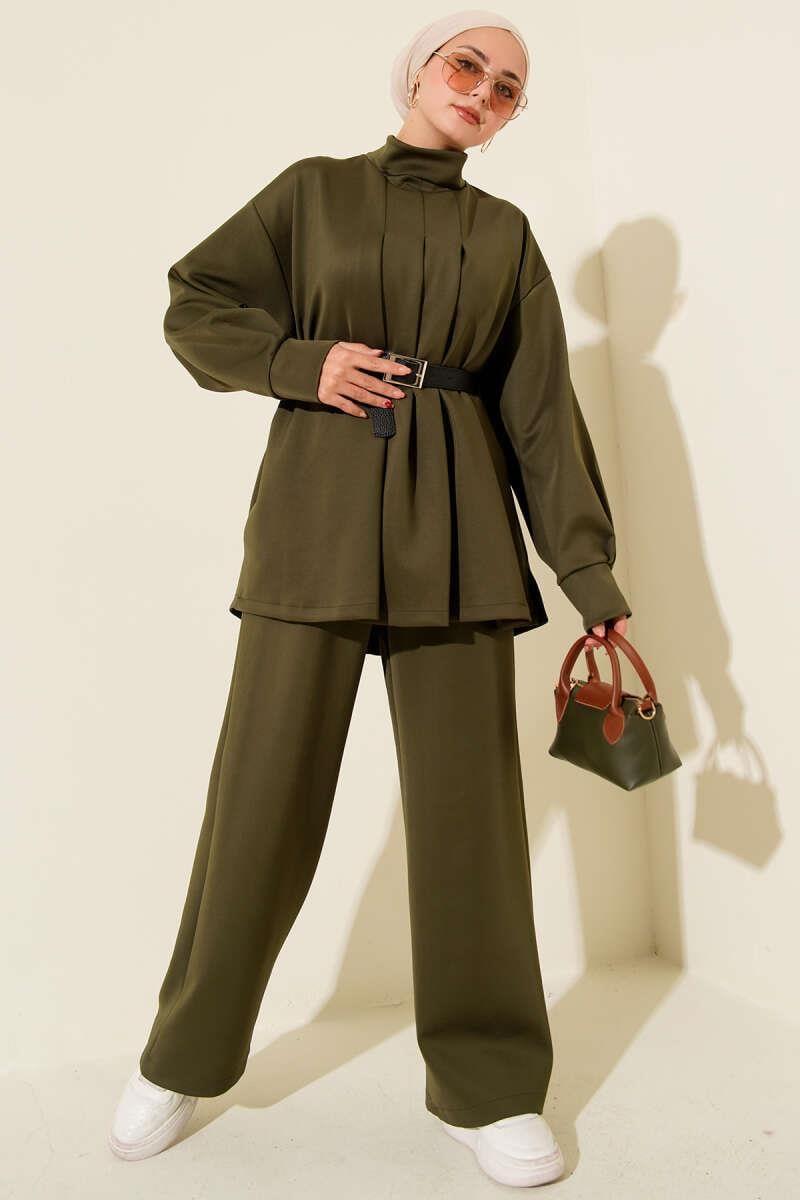 Pleated Belted Scuba 2 Piece Set Khaki (8163-0765-679461)