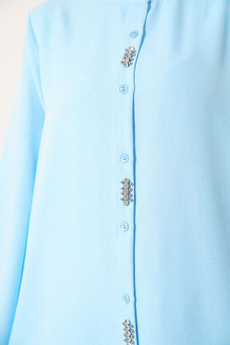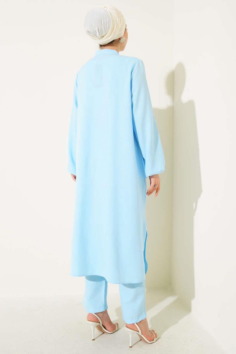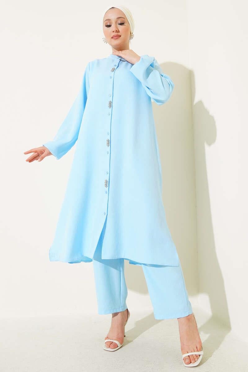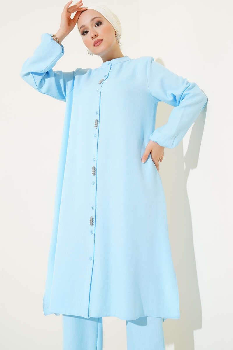 Long Tunic 2 Piece Set with Stone Detail on the Front Baby Blue (0902-25016-658246)
