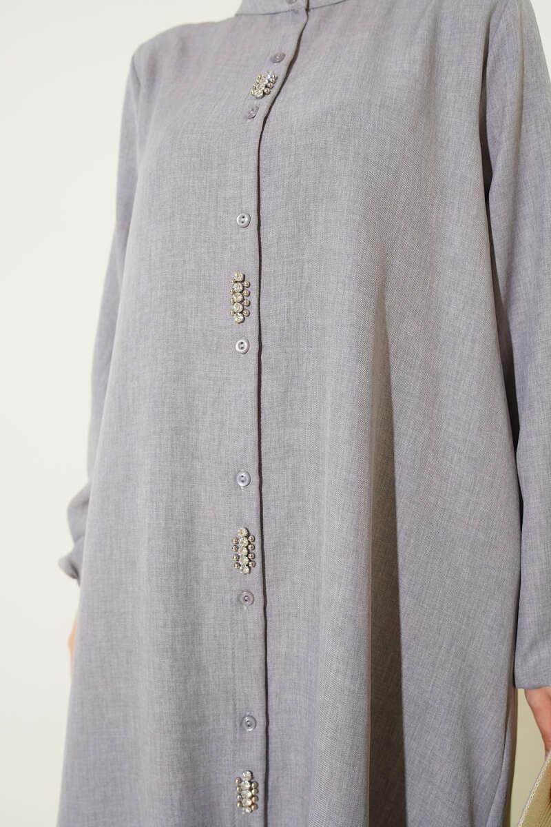 Long Tunic 2 Piece Set Gray with Stone Detail on the Front (0902-25016-658251)