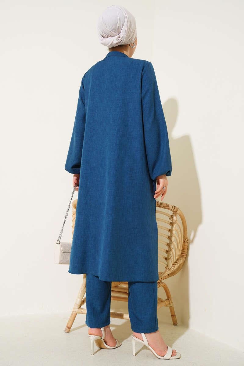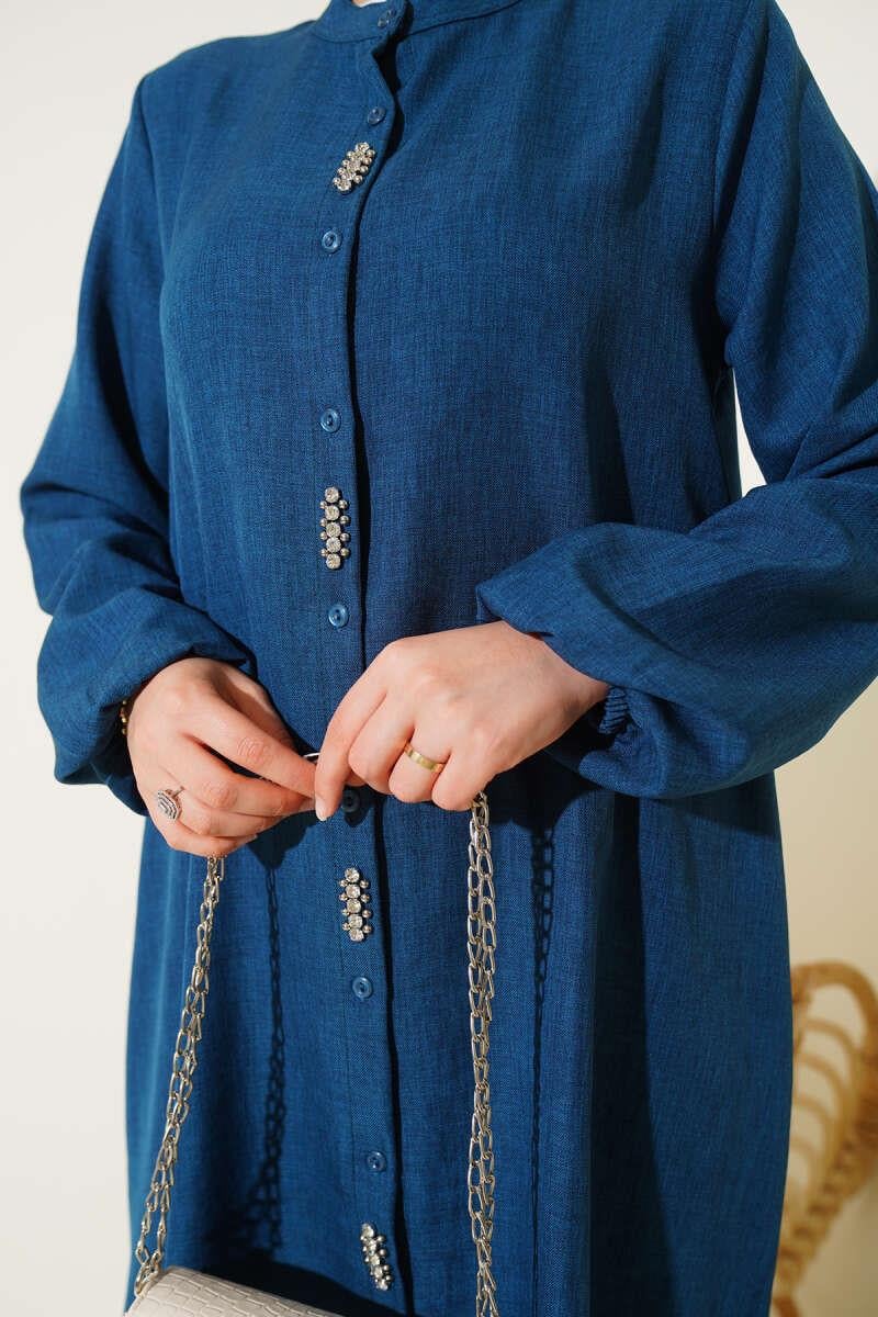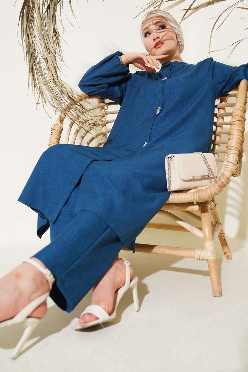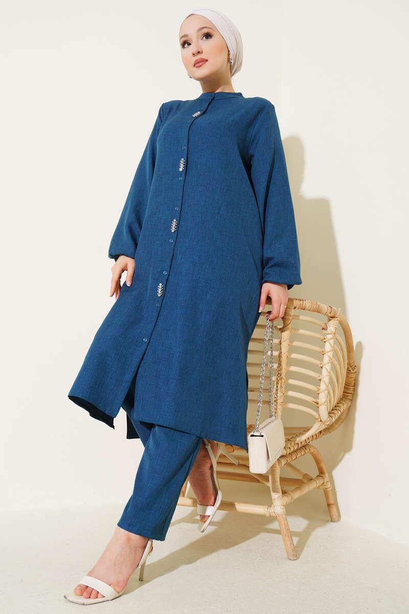 Long Tunic 2 Piece Set with Stone Detail on the Front, Petrol