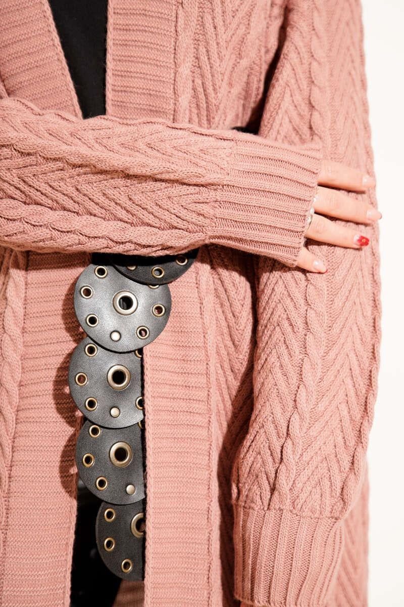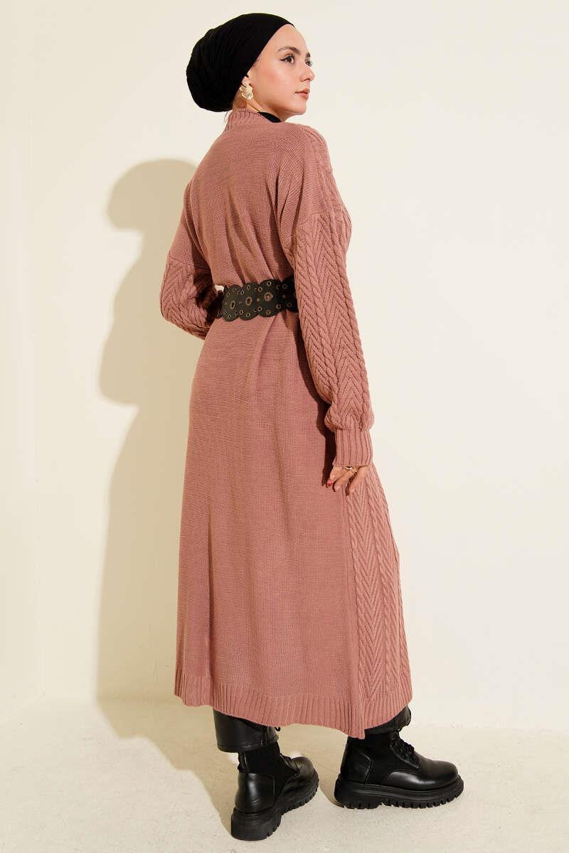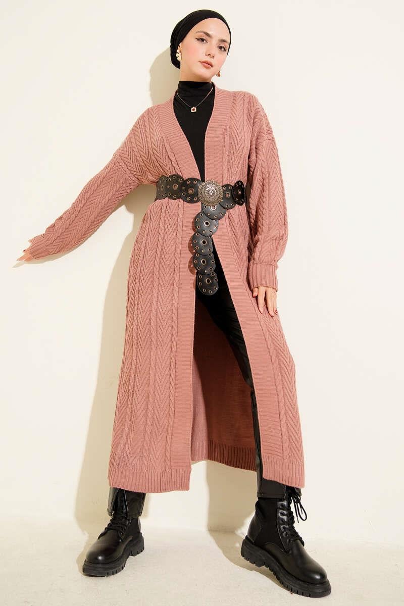 Knitted Shirred Long Knitwear Cardigan Dusty Rose (0875-4350-677092)