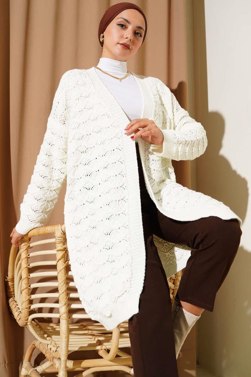 Knitted Pattern Detailed Knitwear Cardigan Ecru (8374-0422-677478)